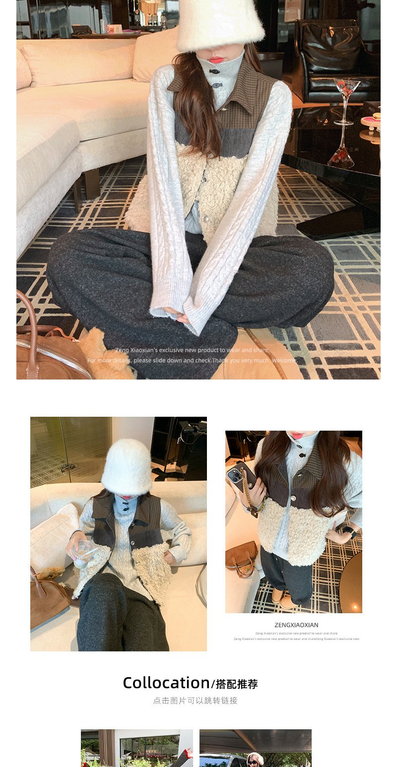 <曾小咸推荐>现货秒杀 !微信超特价!拼接羊羔毛马甲 日常249.99 立减120 秒杀129.99!! 半高领长袖针织衫 秒杀69.99!!