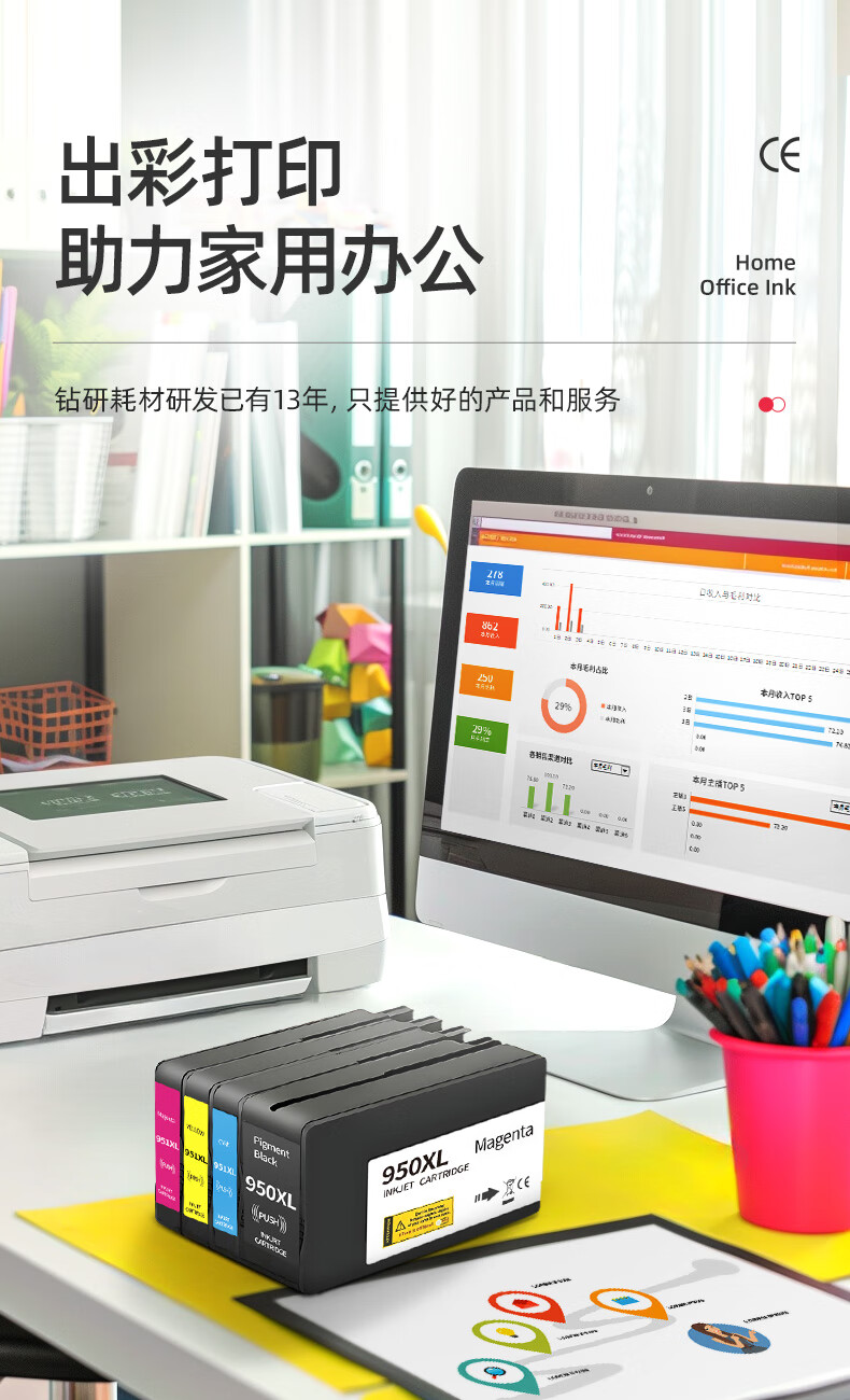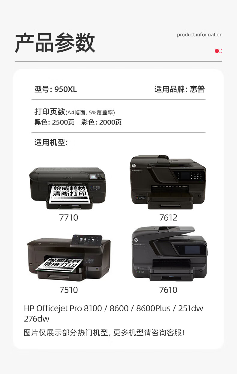绘威950XL/951XL墨盒 适用惠普HP 8100 8600 8600plus 251dw 276dw打印机墨盒 墨水 Officejet Pro 四色套装