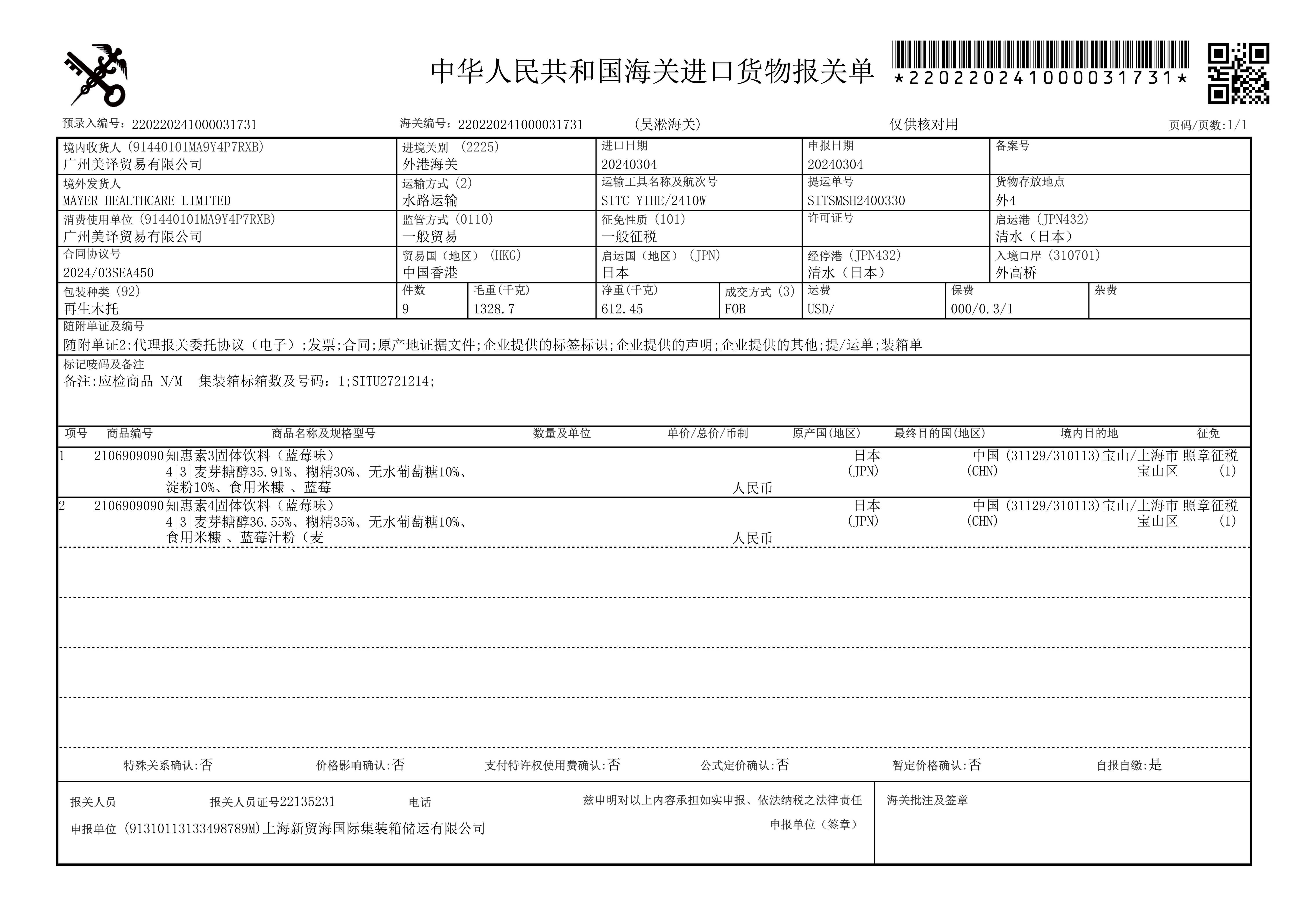 知惠素1(1-3岁适用,原装进口,境内快速发货)