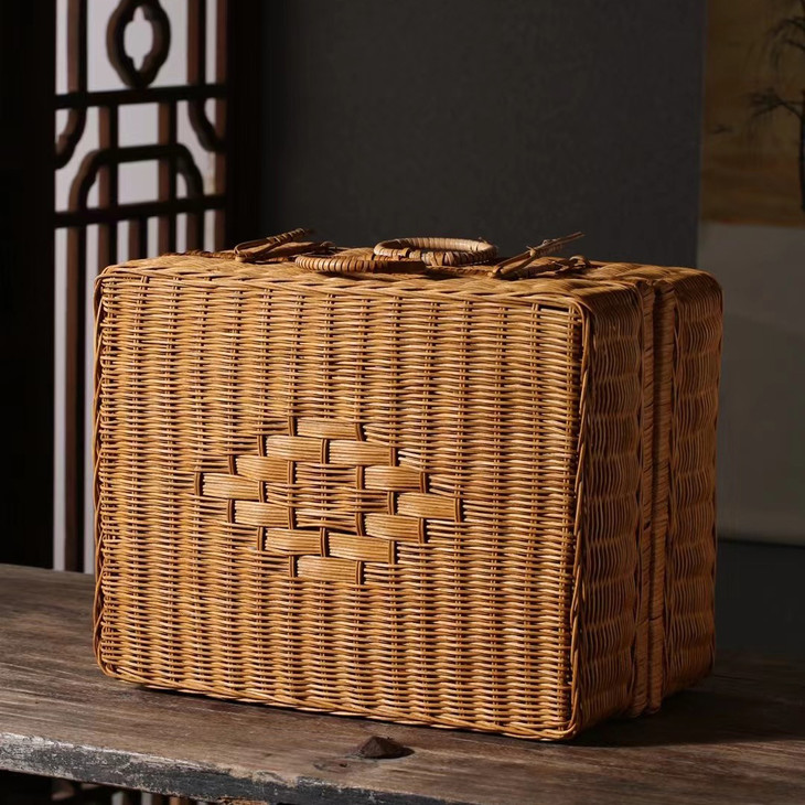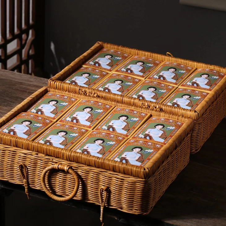 早期就以散茶的方式储存,并且还是这种比较利于转化的手工编制竹筐内存放的;