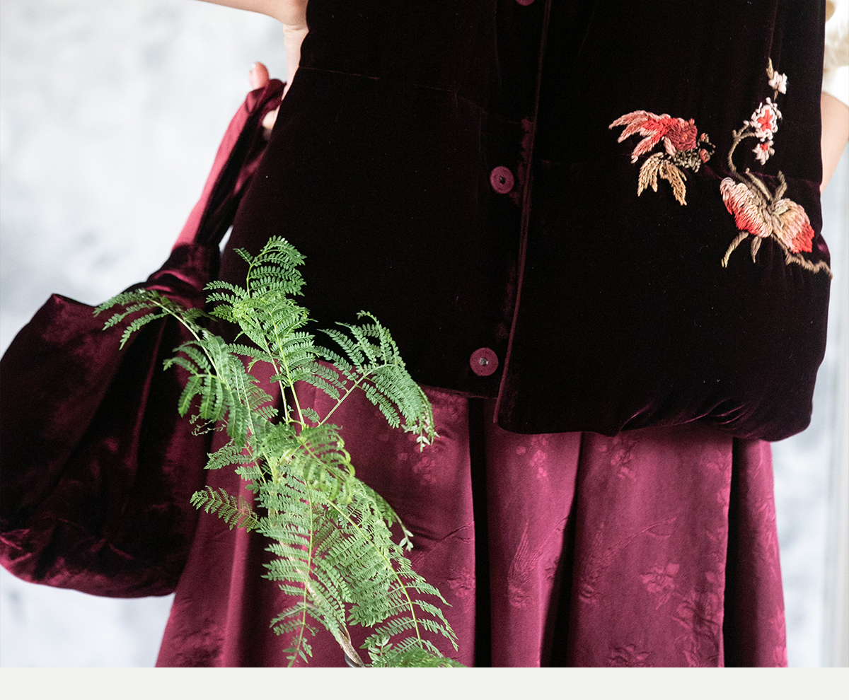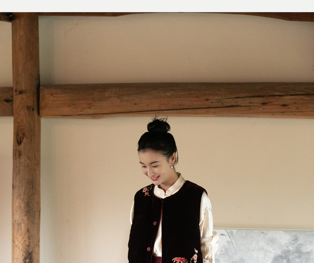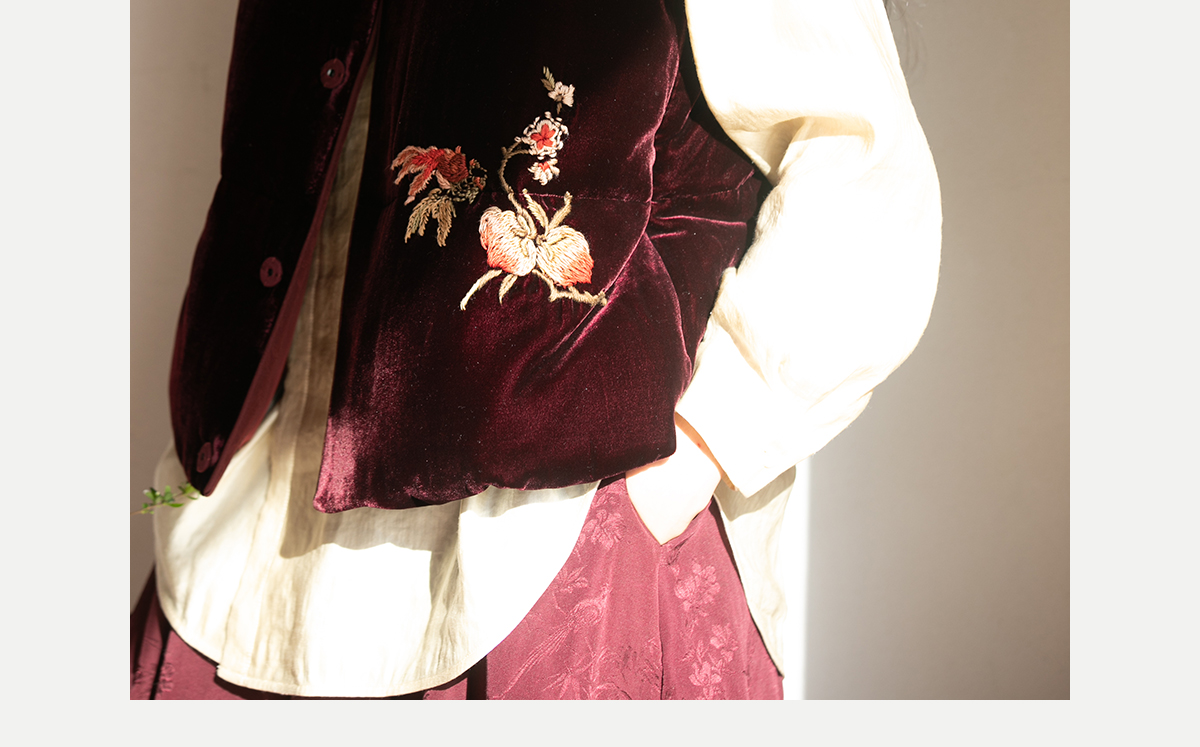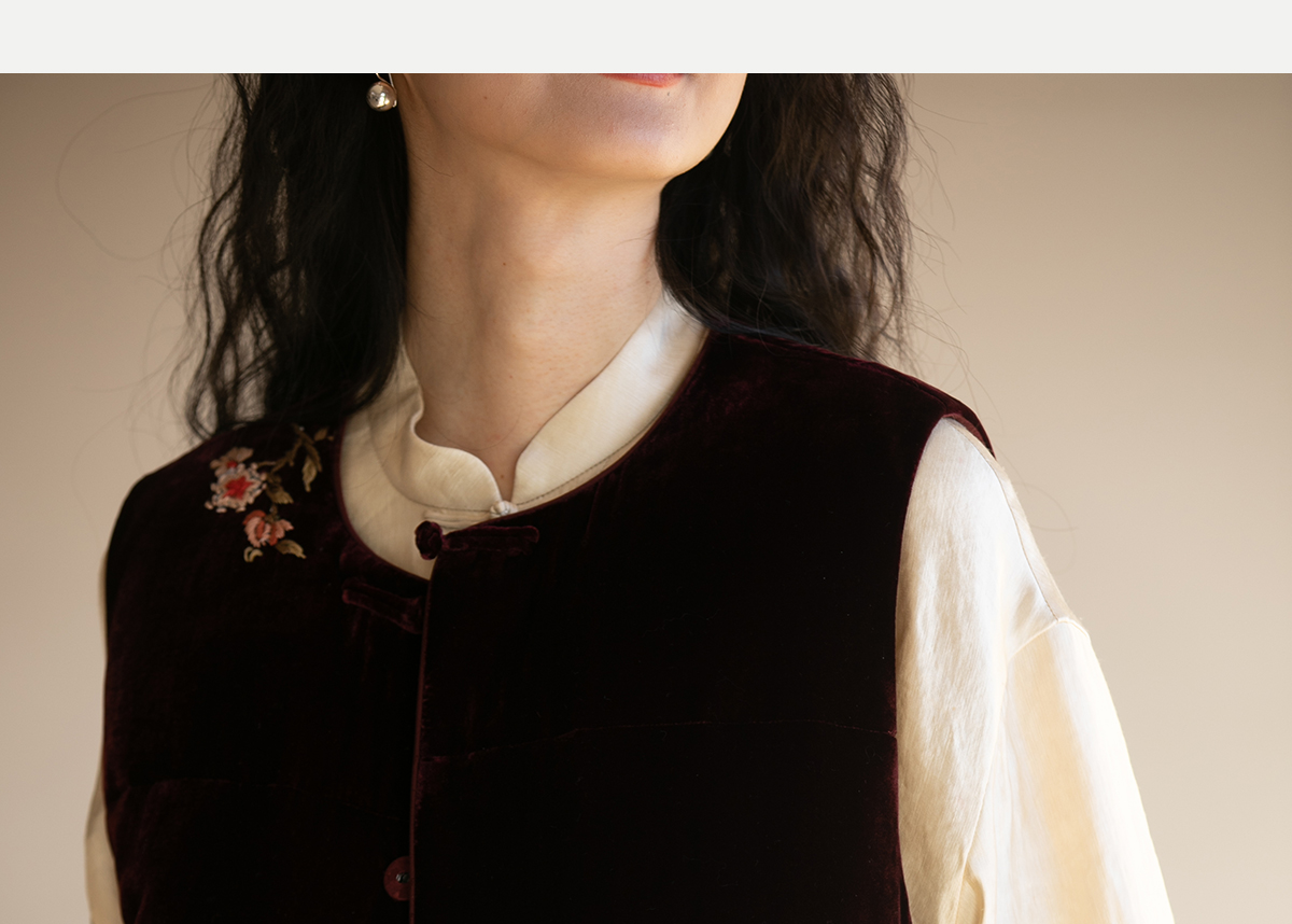 牧衣游原创 丝绒刺绣无袖羽绒马甲95白鸭绒东方新中式马夹 白鹤眠