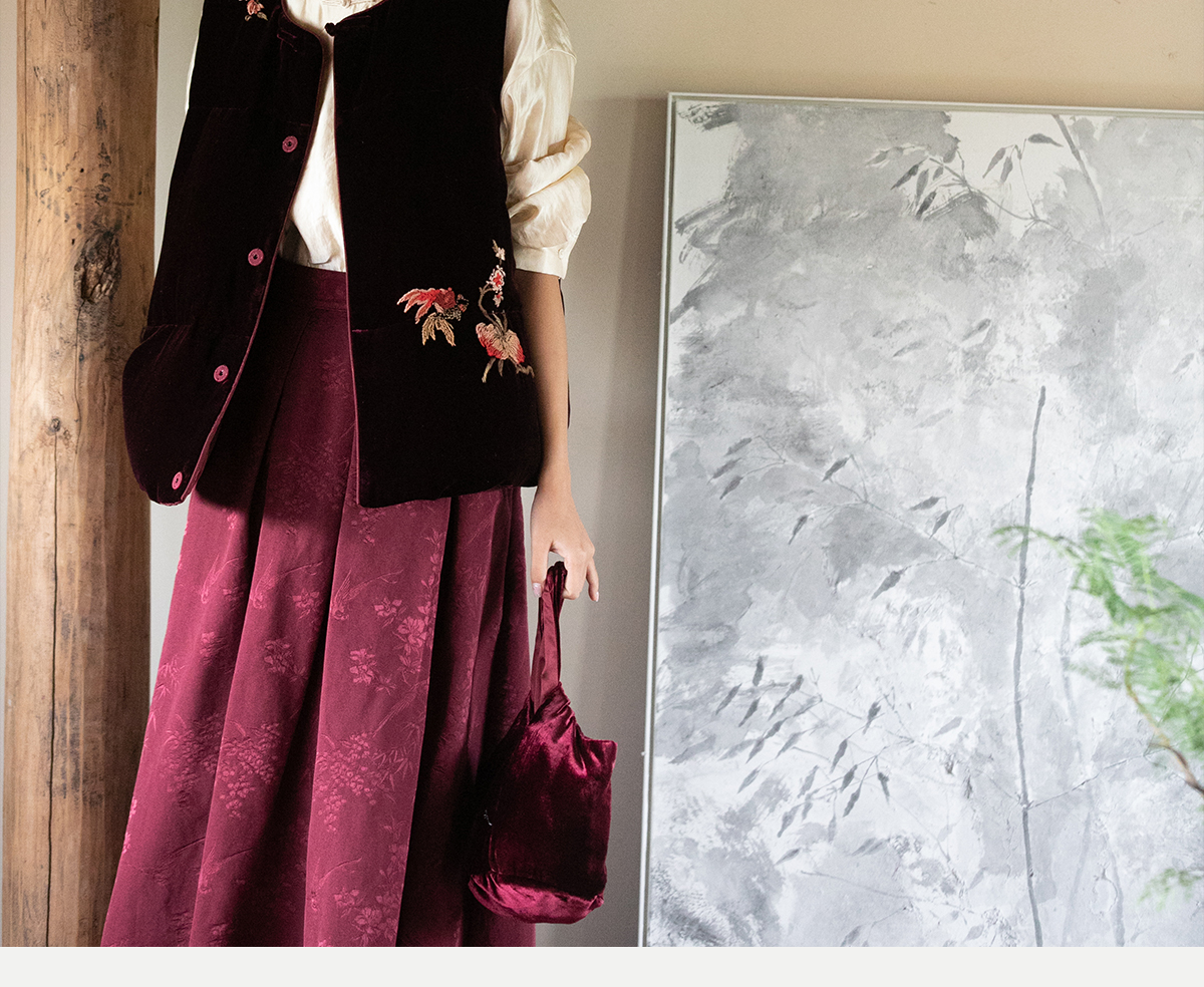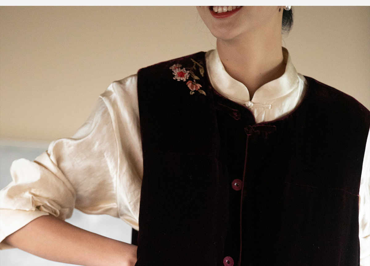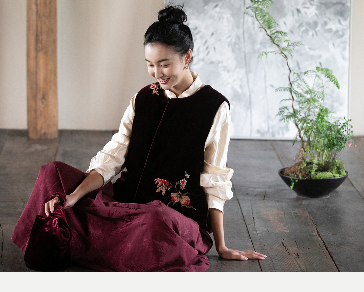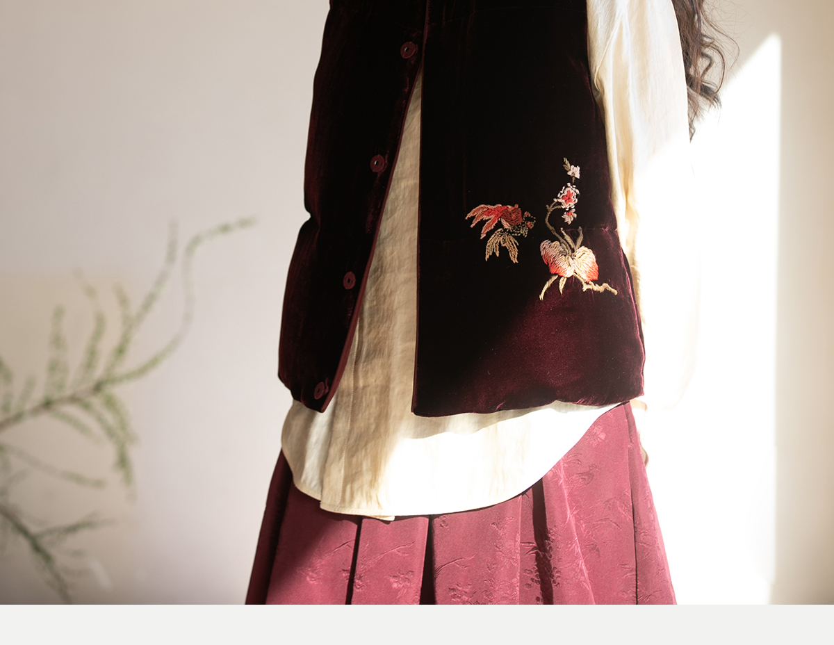 牧衣游原创 丝绒刺绣无袖羽绒马甲95白鸭绒东方新中式马夹 白鹤眠