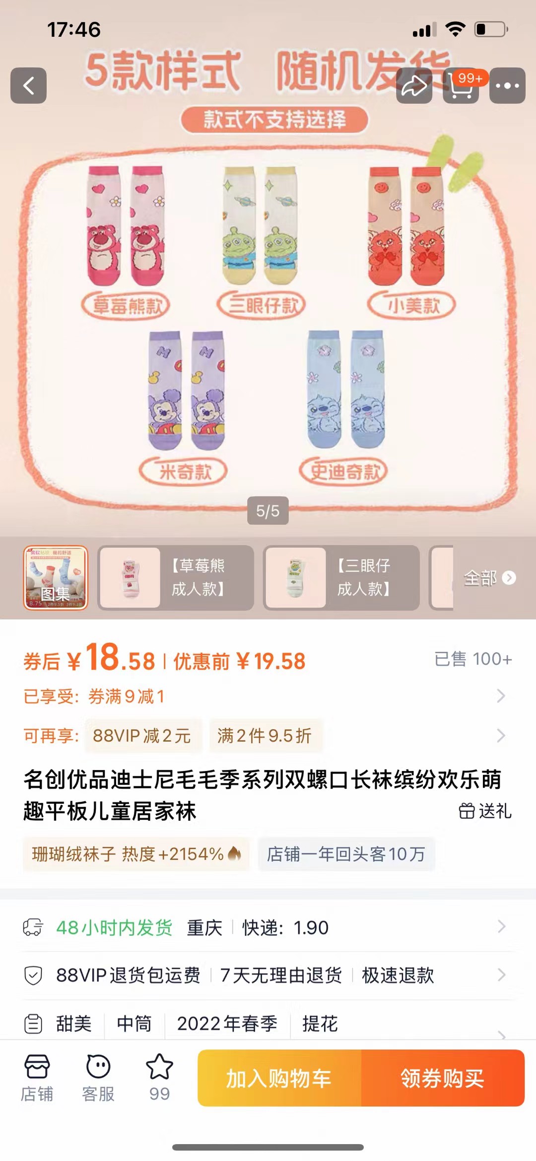 三眼仔×1双 ➕随机小美或史迪仔1双