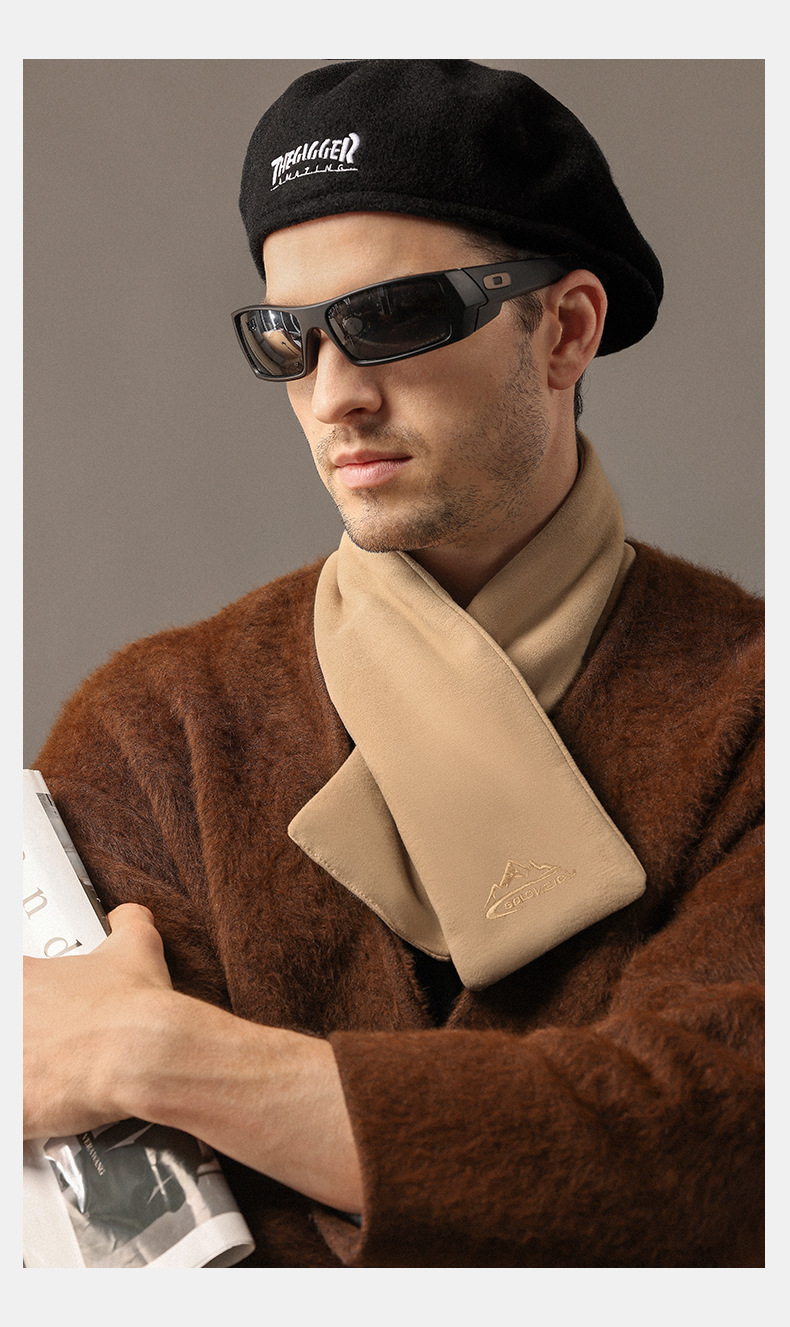 冬季新款复古德绒围巾男士冬天户外加绒围脖发热保暖防风防寒围脖围巾