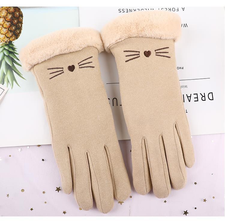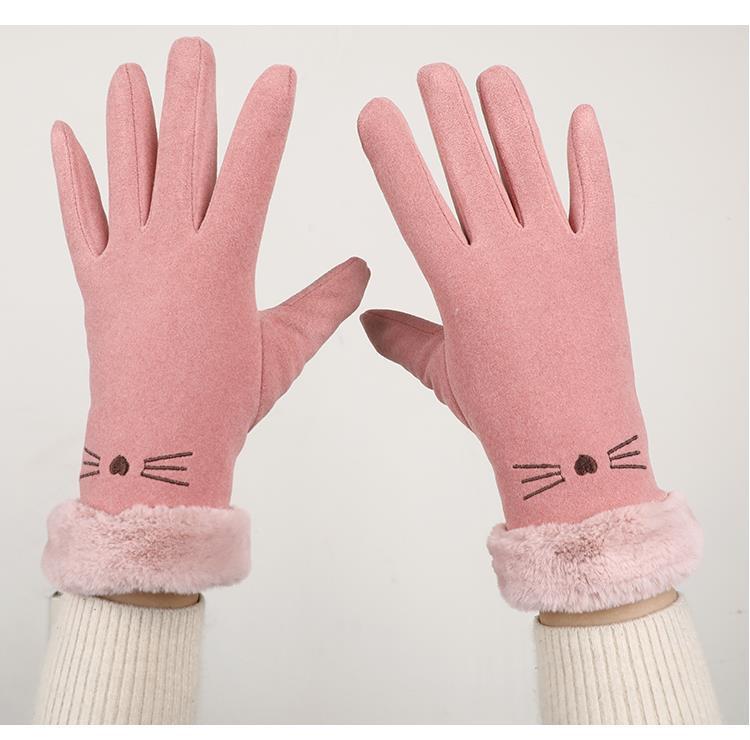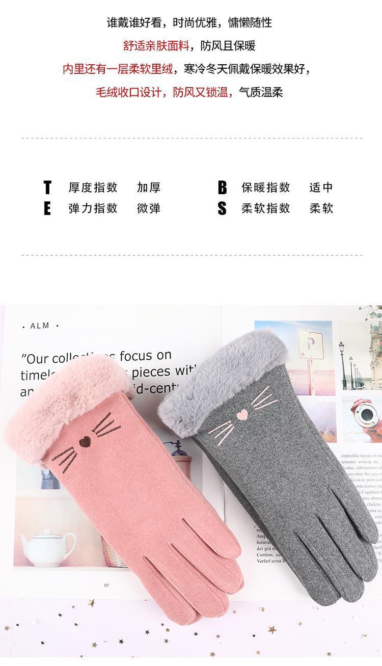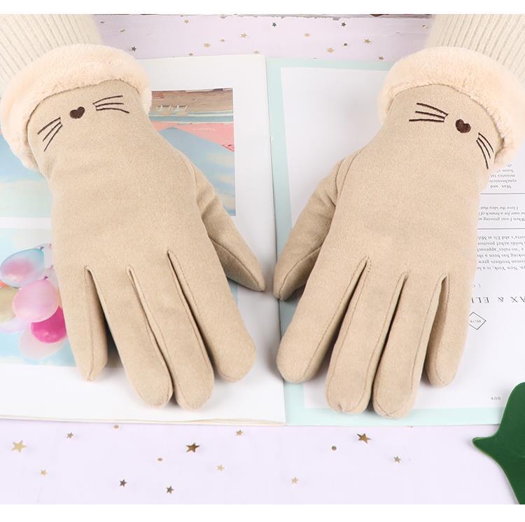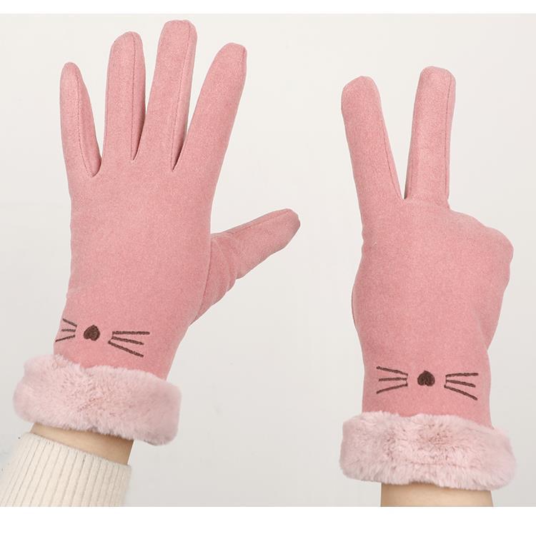 手套冬天女加绒加厚保暖可爱麂皮绒女士骑行防寒骑车防风触屏冬季