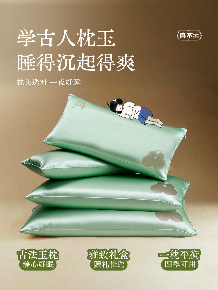 【真不二】颜如玉岫玉睡枕轻柔羽丝棉织锦缎面居家午睡枕四季适用