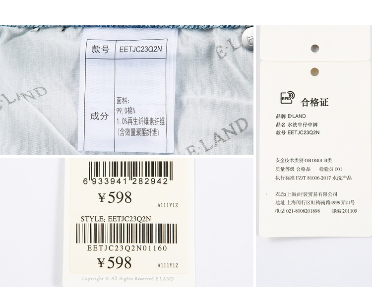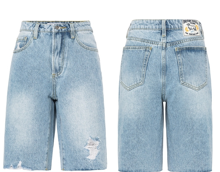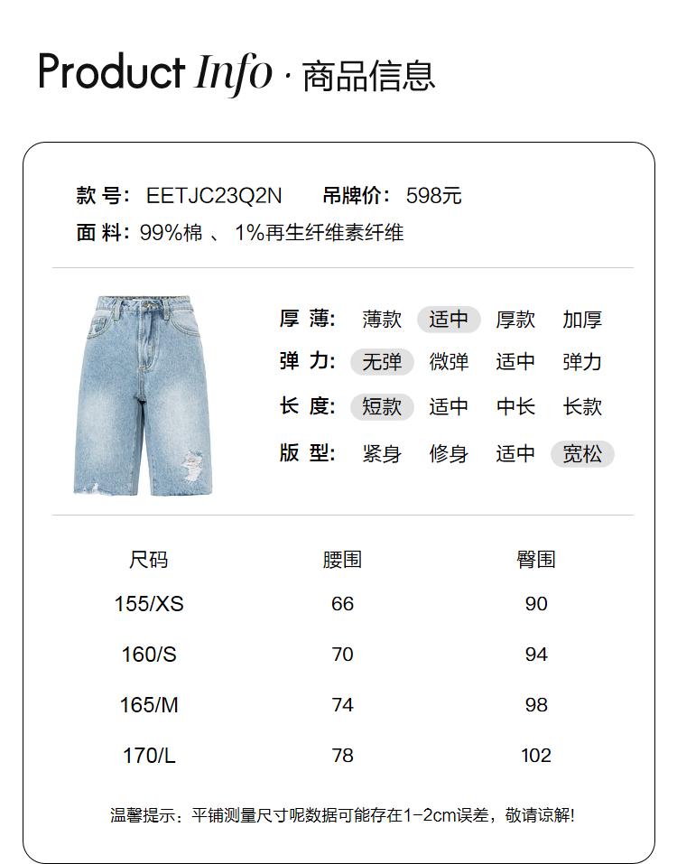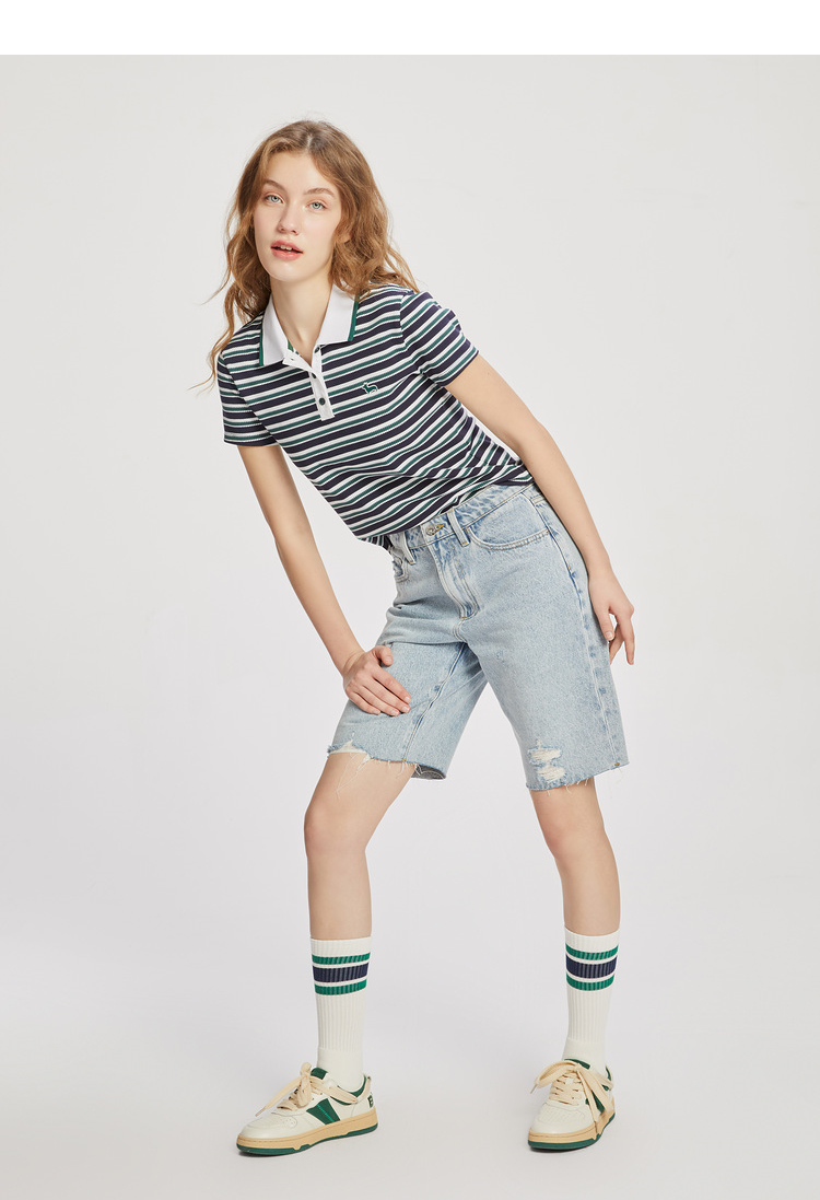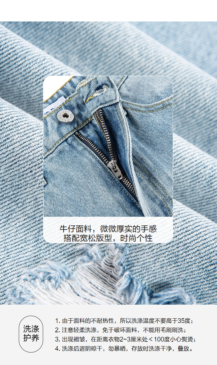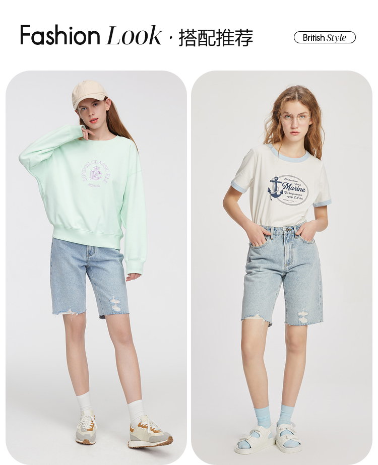 ELAND衣恋2022年春季新款潮酷个性美式设计感剪边破洞牛仔短裤女EETJC23Q2N