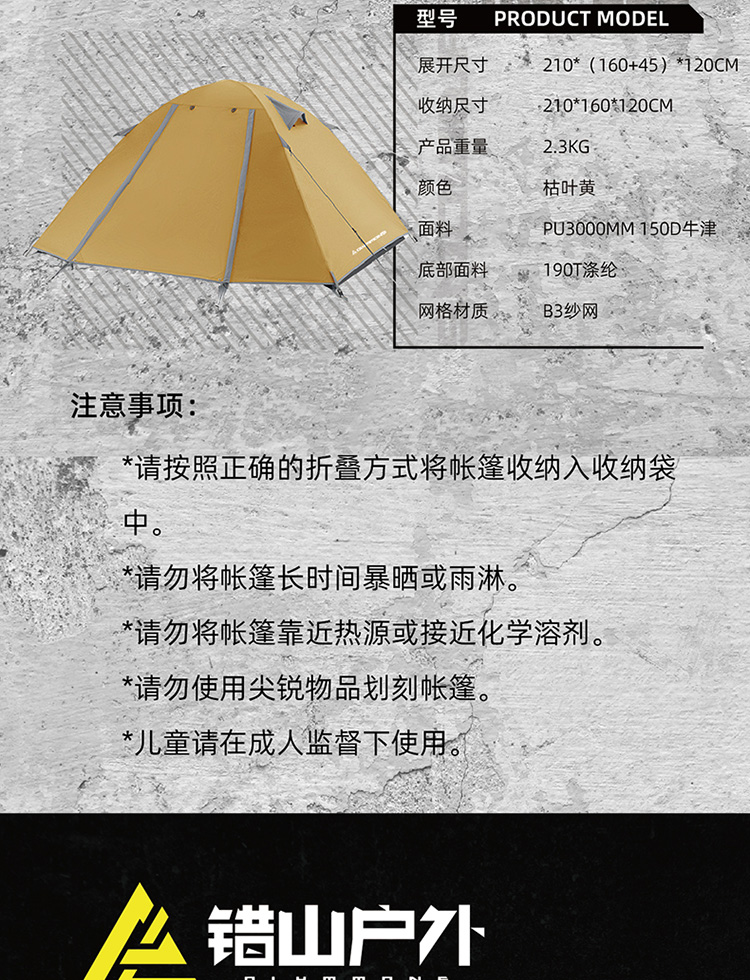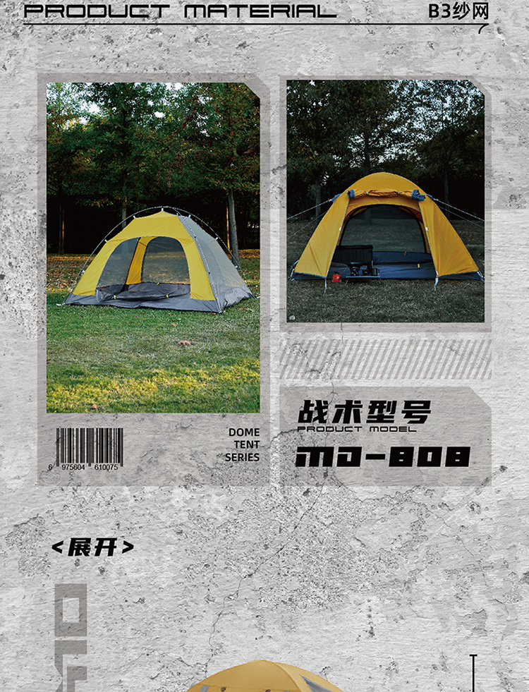 错山户外圆顶帐篷露营防雨加厚徒步帐篷轻量化野外过夜野营便携 MD808
