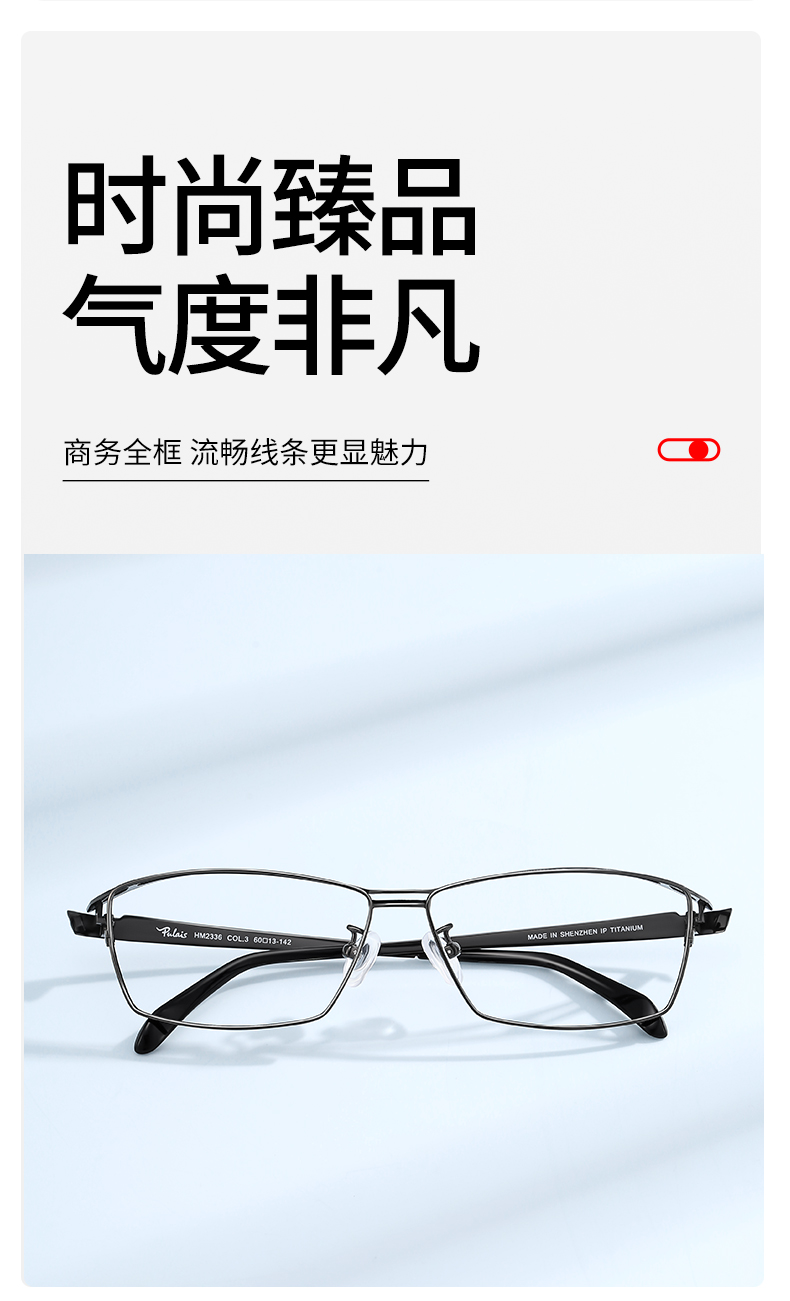 普莱斯光学镜框HM2336 商务纯钛 气质全框 弯曲不易变形 双色可选