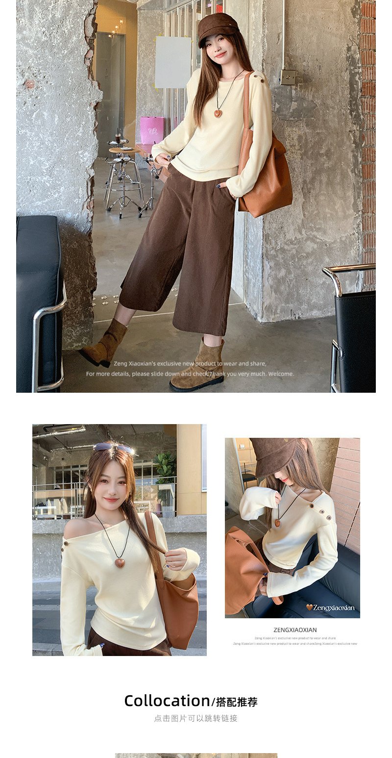 <曾小咸推荐>现货秒杀 !微信超特价!韩系斜肩长袖T恤 日常129.99 立减70 秒杀59.99!!