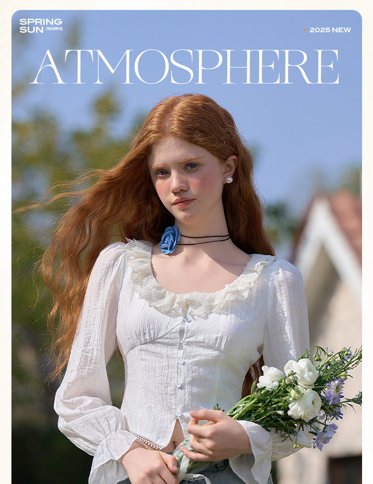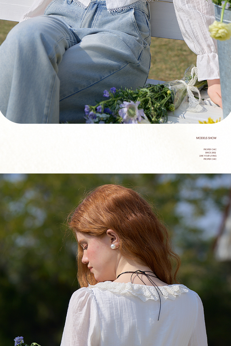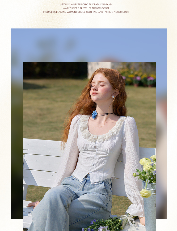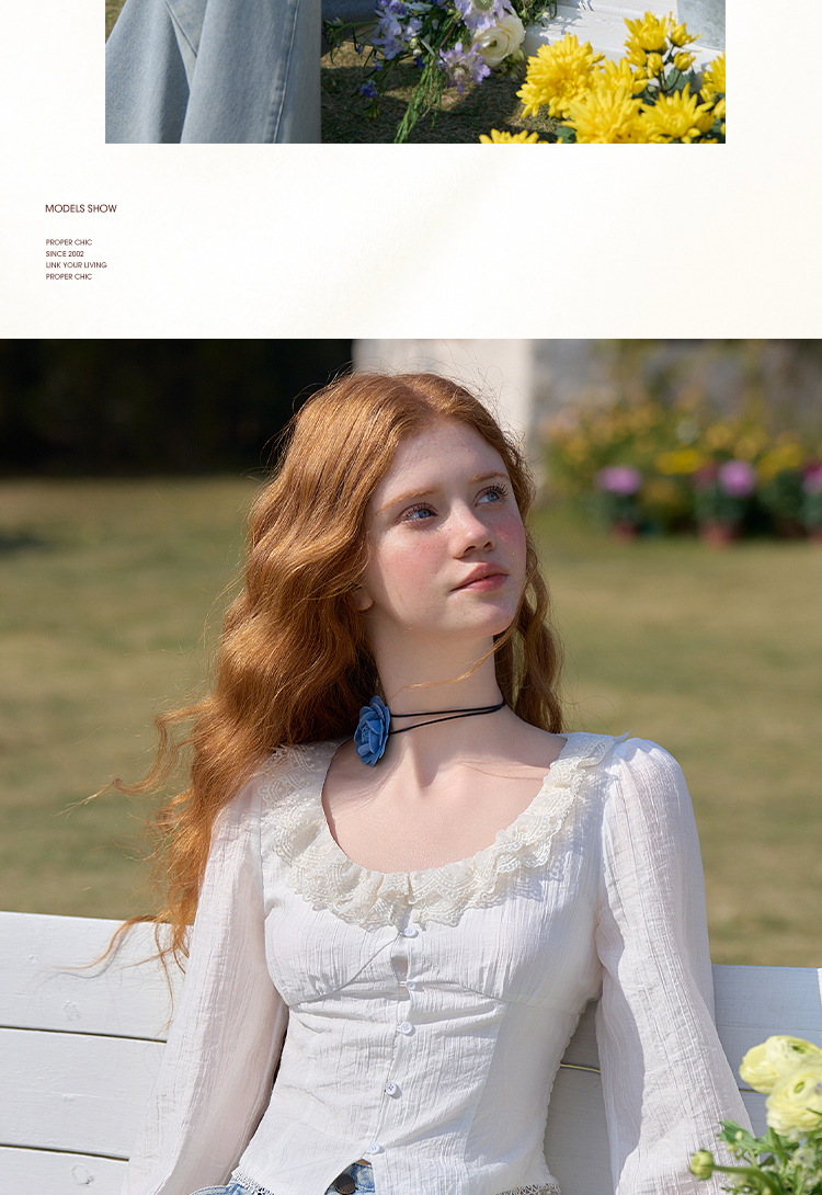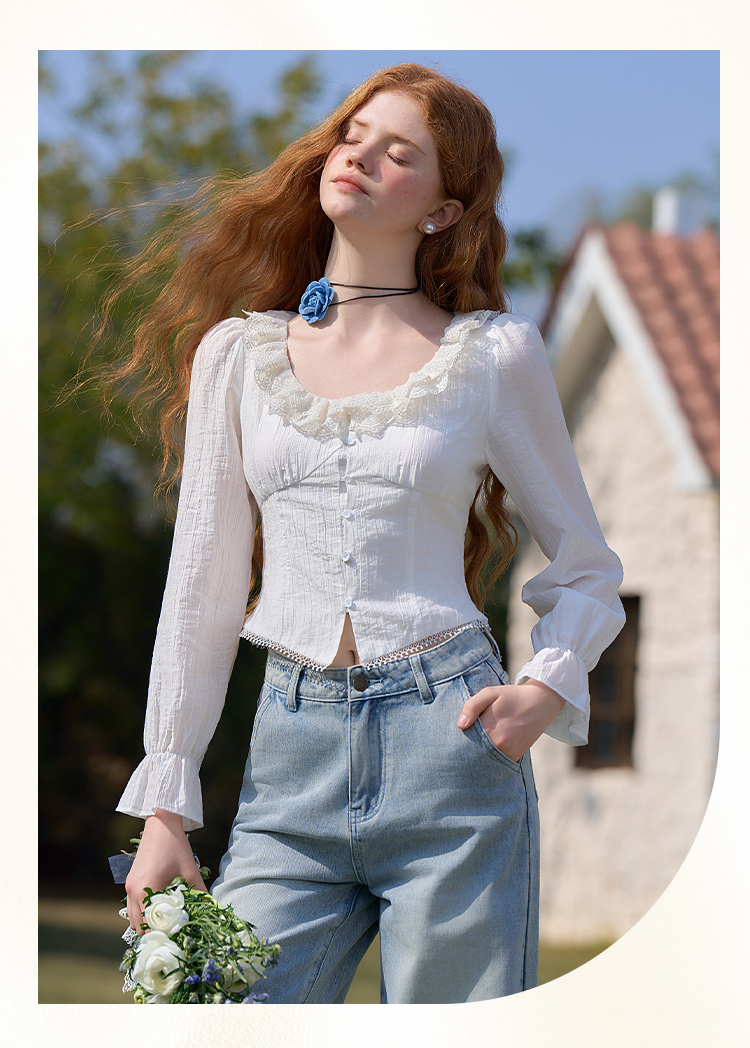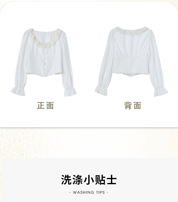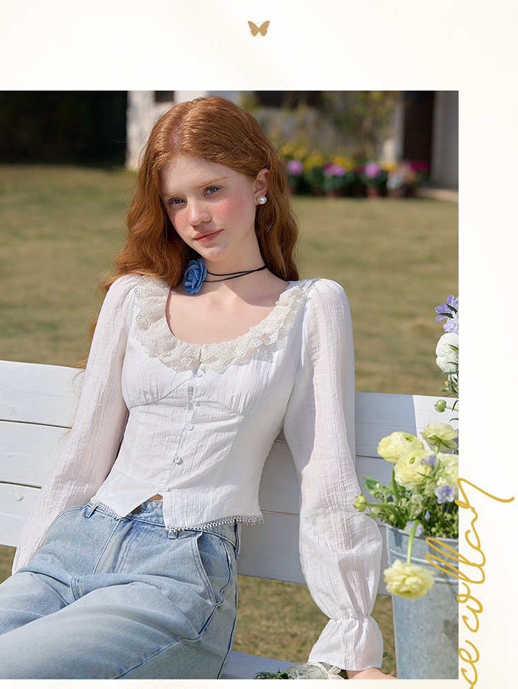 法式浪漫重工双层蕾丝U领天丝衬衫女短款衬衣上衣V0550126