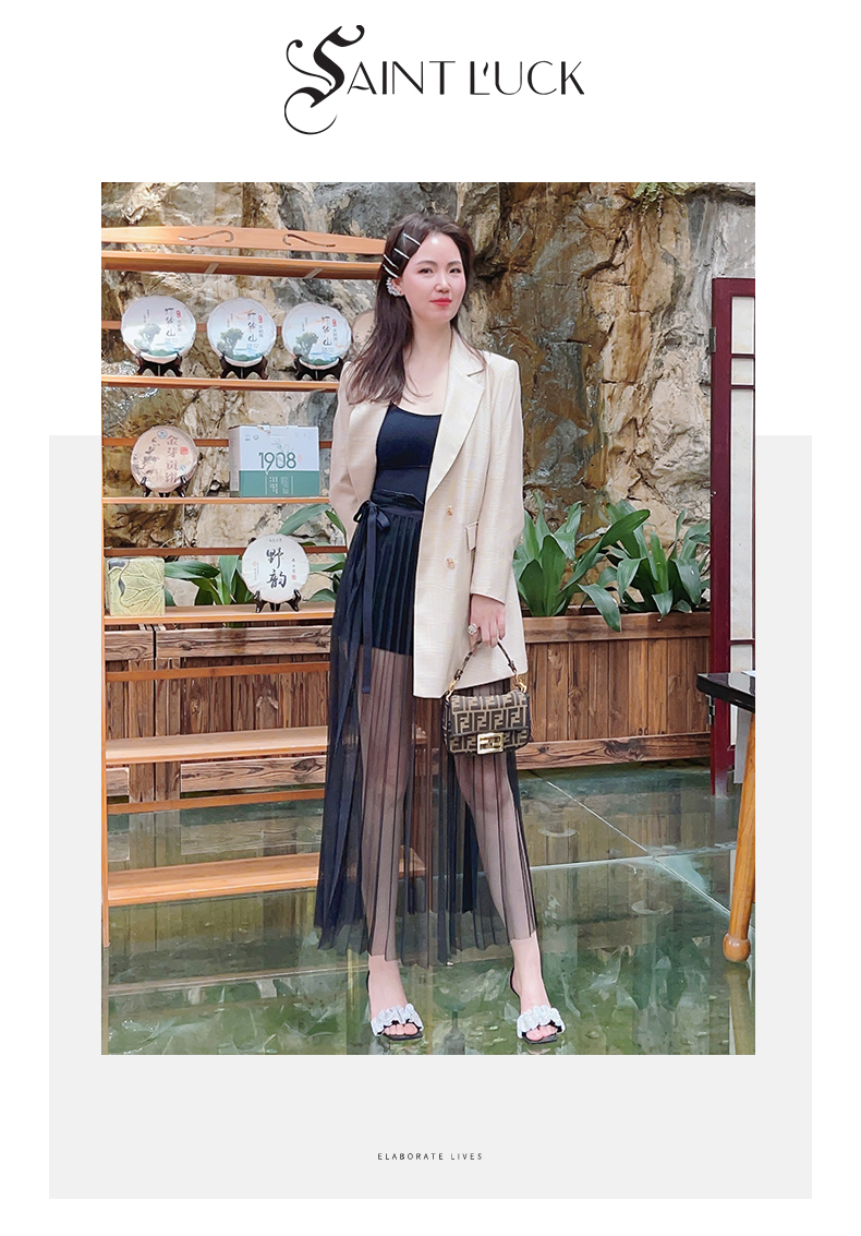 SAINT L’UCK/圣媛女装 优雅网纱压褶半身裙SA320B56