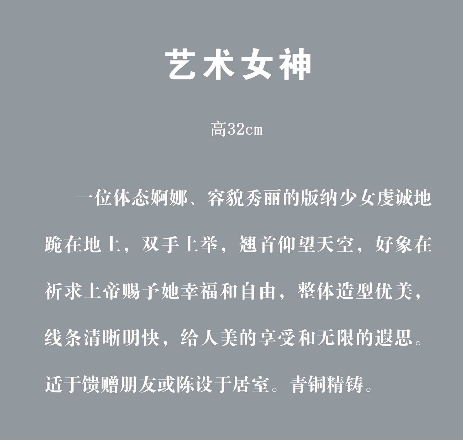 宇达青铜全铜摆件《艺术女神》创意礼品 工艺品 家居摆件 高32cm