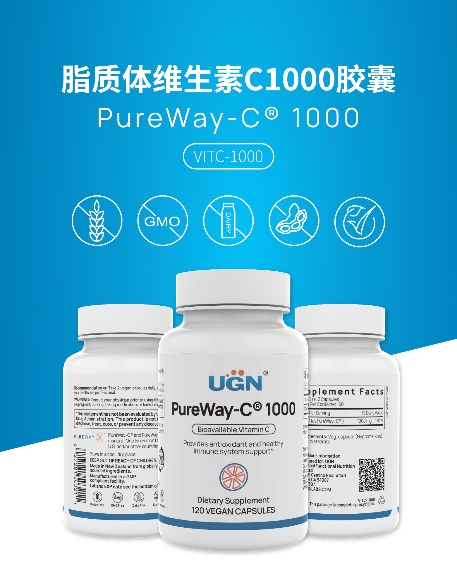 PureWay-C®是美国Innovation Labs 研发生产的一种专有的维生素C混合物。该补充剂含有与维生素C协同作用的生物类黄酮和脂质化合物。其独特的配方可促进维生素C快速吸收,与常见的维生素C形式(如抗坏血酸和抗坏血酸钙)相比,PureWay-C® 能更快地增加血清维生素 C 水平。