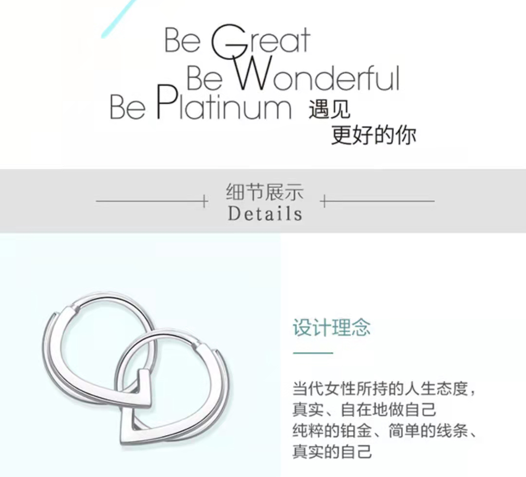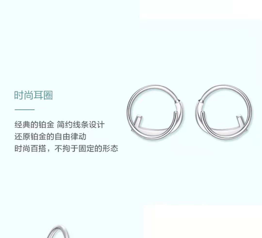 周大福PT GU0026W系列流线简约铂金耳环