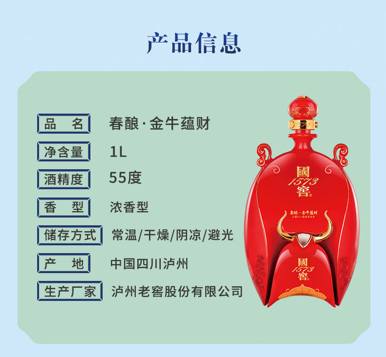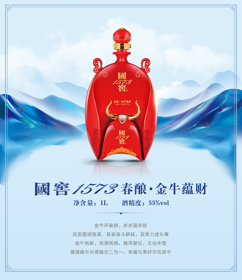 【泸州老窖官方形象店】55度 国窖1573春酿酒金牛蕴财 1L