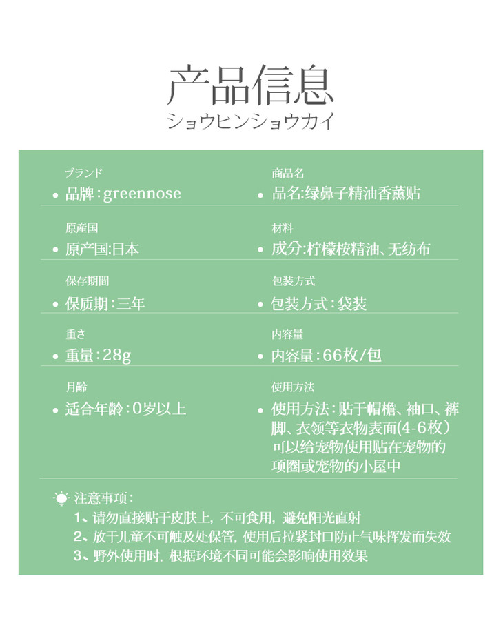 【Greennose绿鼻子】宝宝驱蚊贴 66片/包防蚊贴户外神器