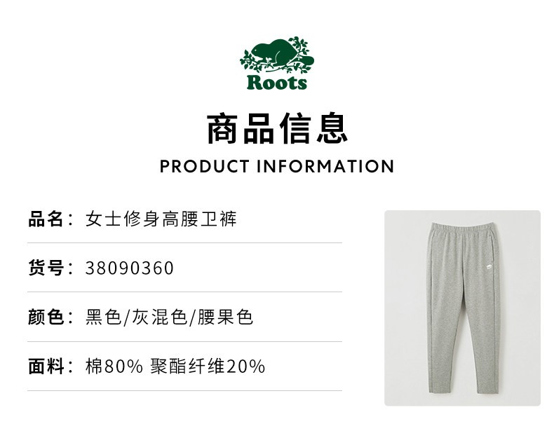 【2件9折】【ROOTS】女式修身高腰卫裤