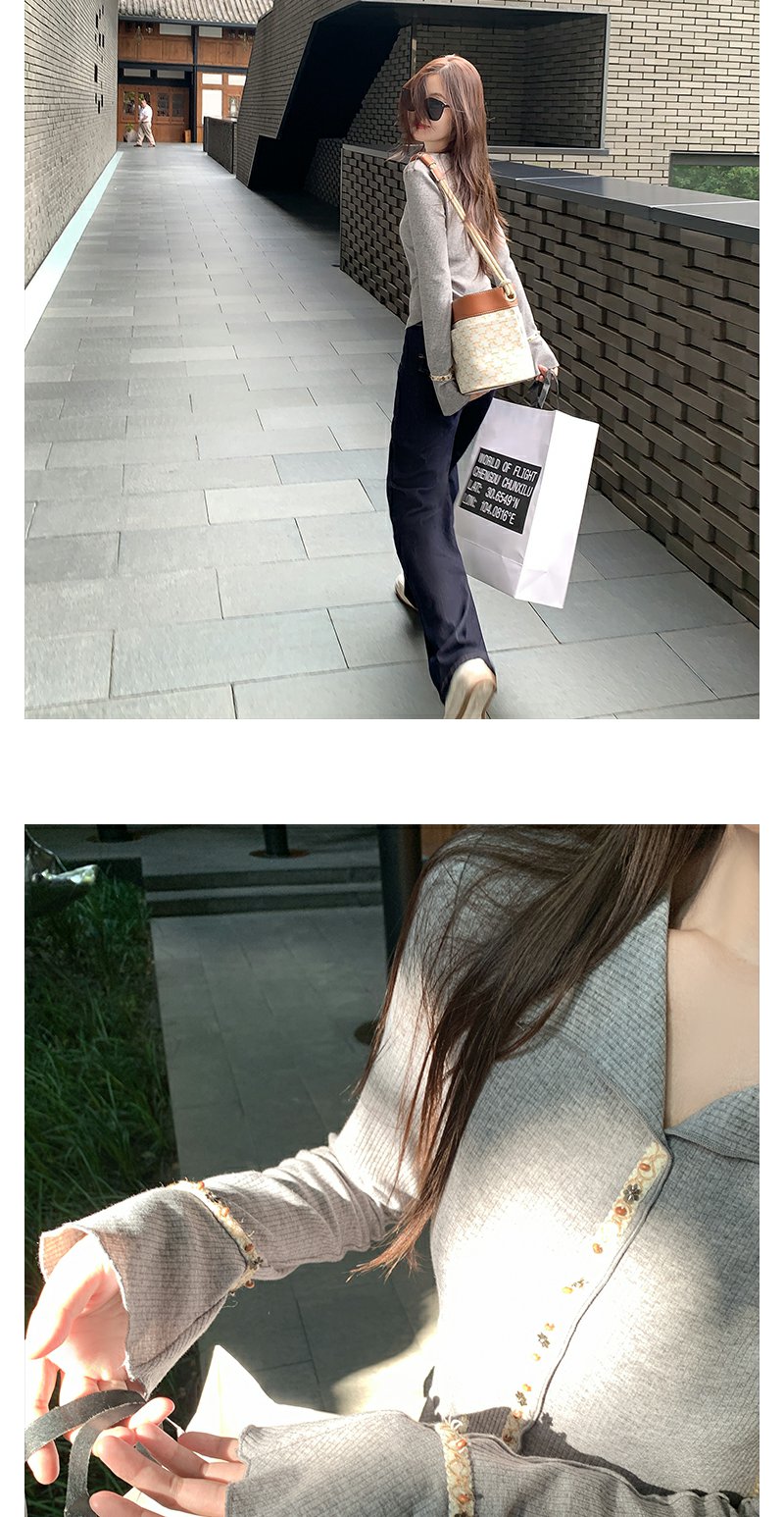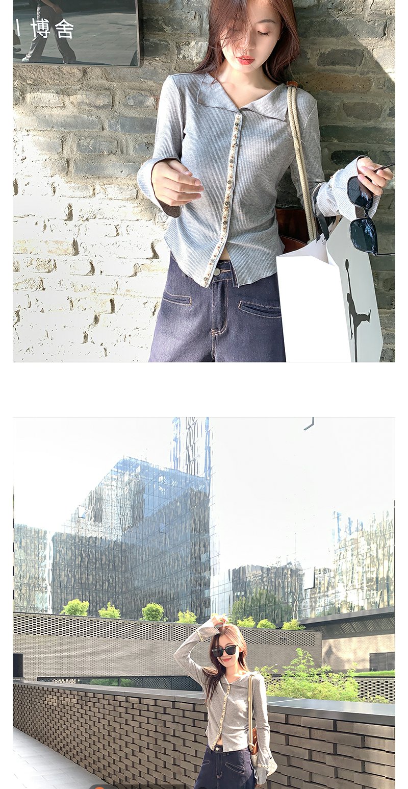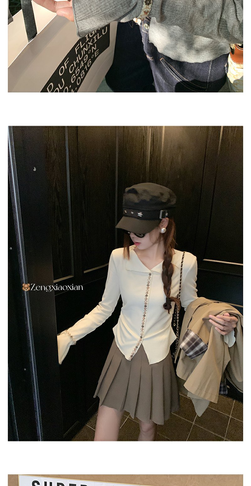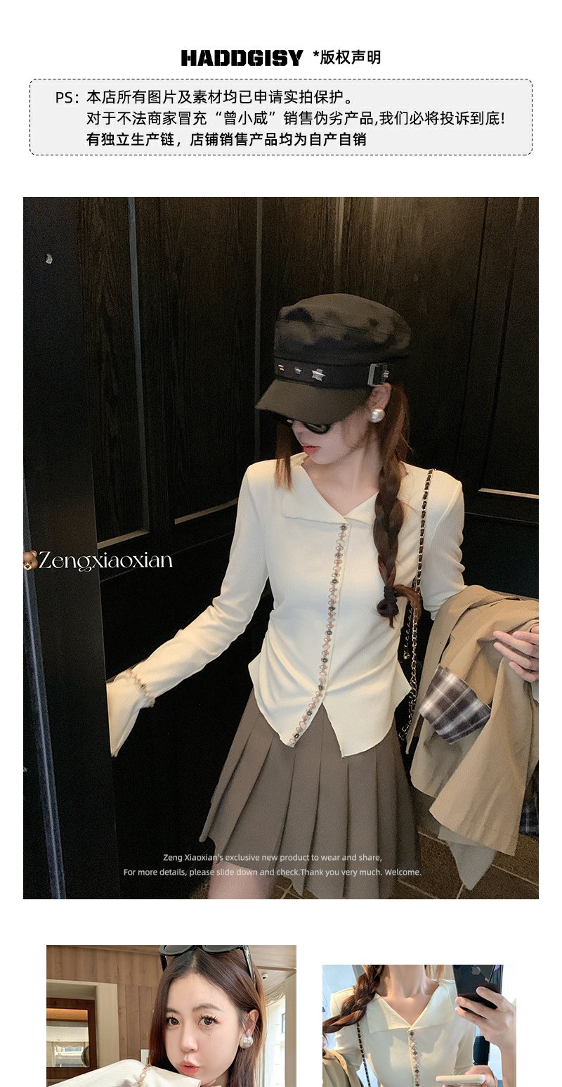 <曾小咸推荐>韩系翻领修身显瘦长袖T恤打底衫