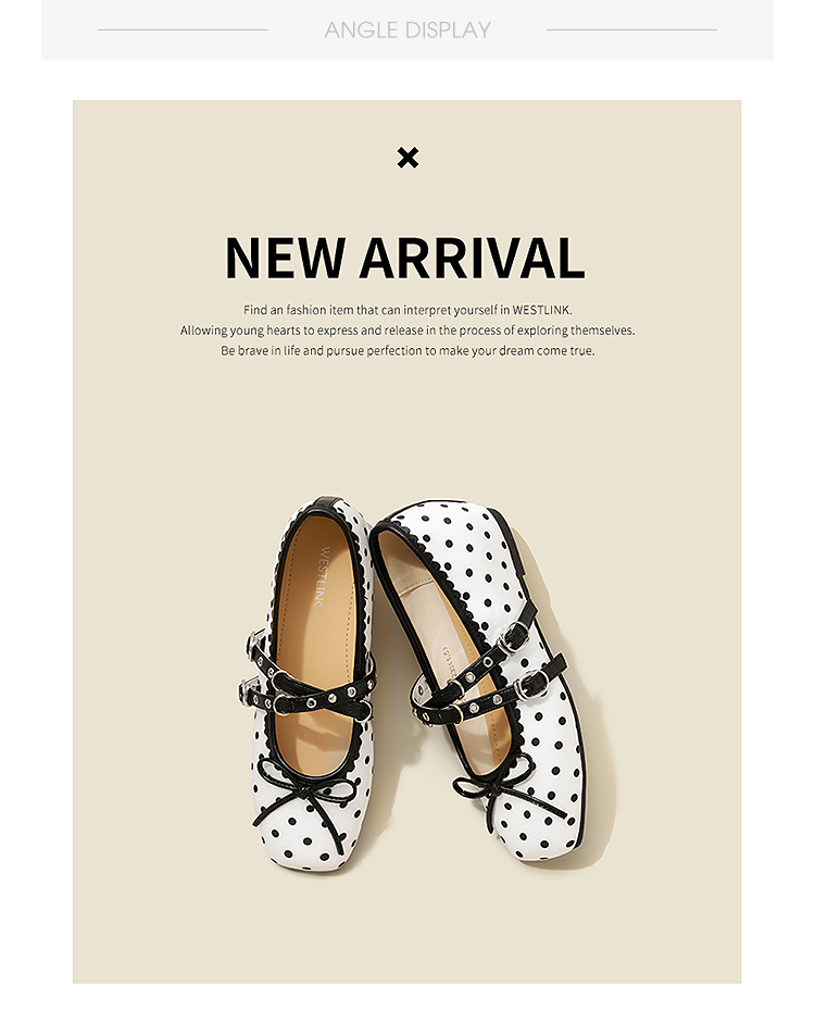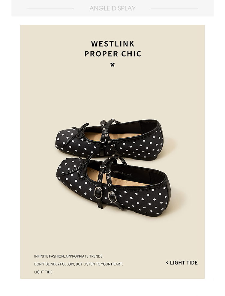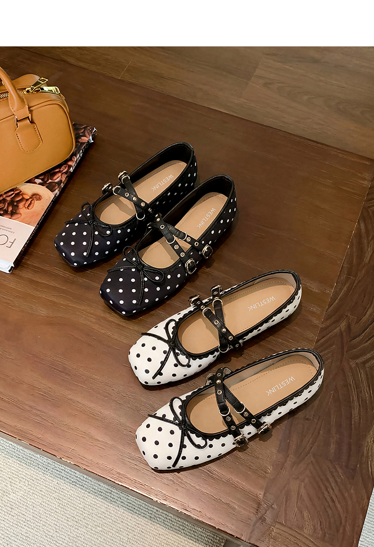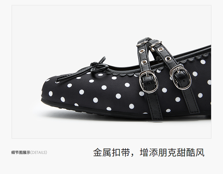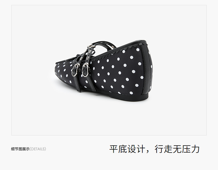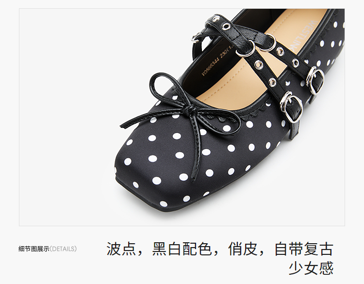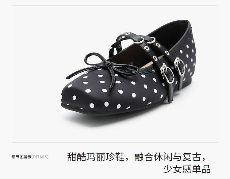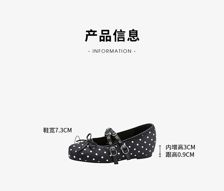 西遇芭蕾玛丽珍鞋女2026新款春季白色波点平底单鞋内增高小皮鞋子V0566344