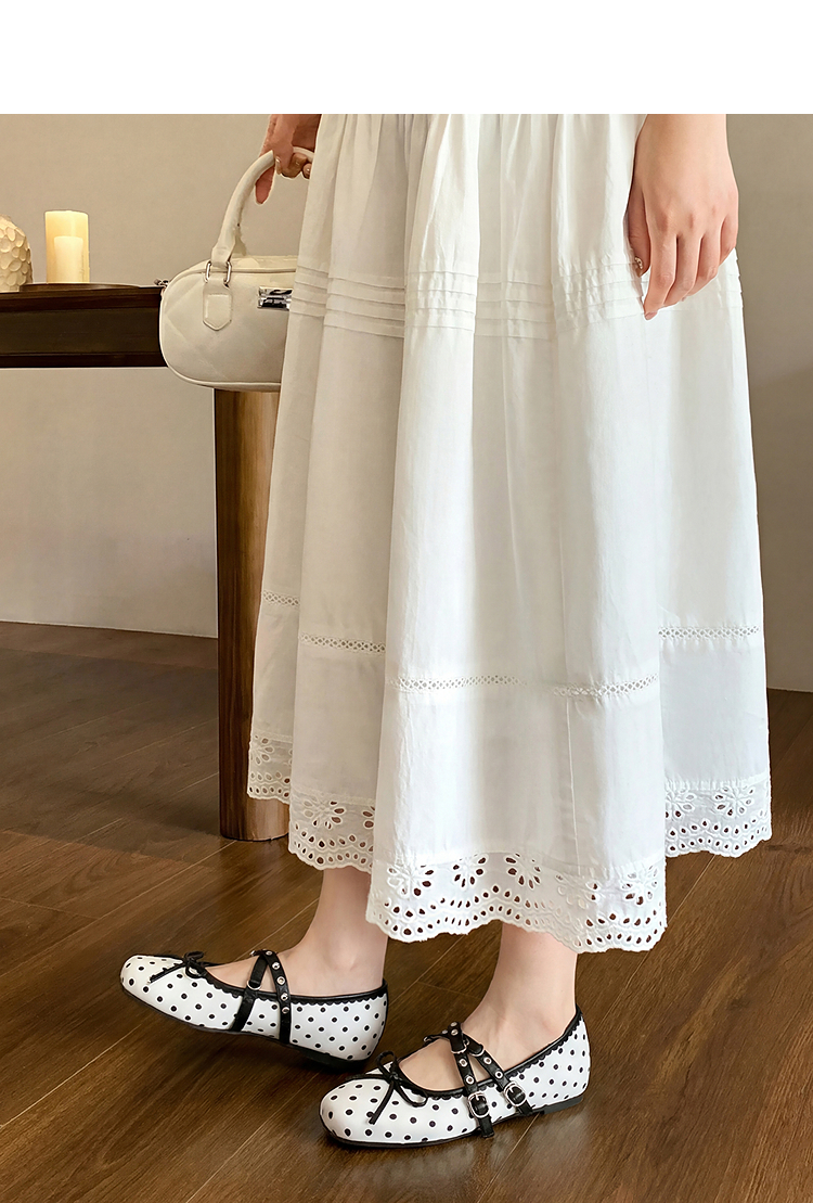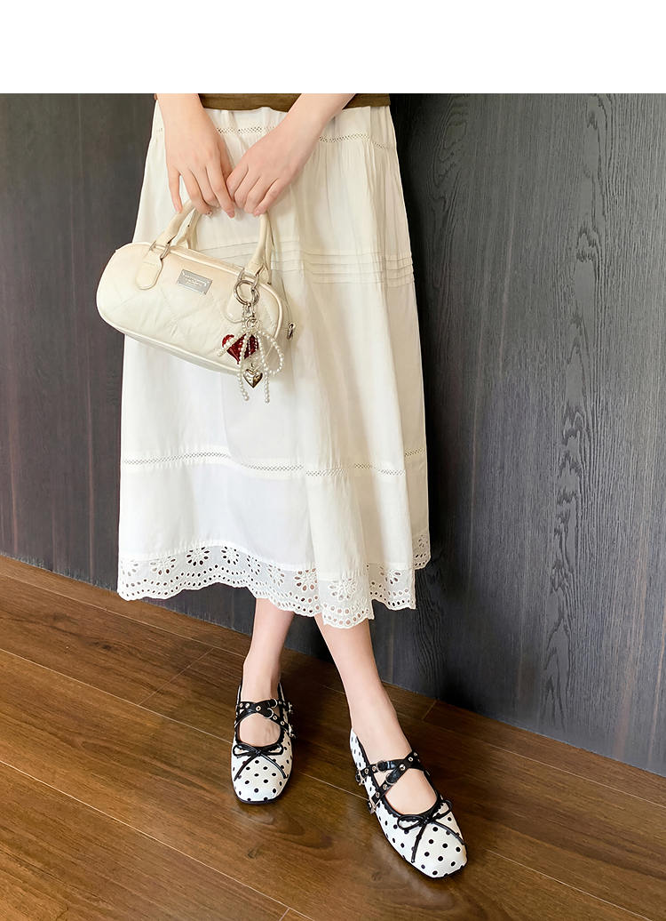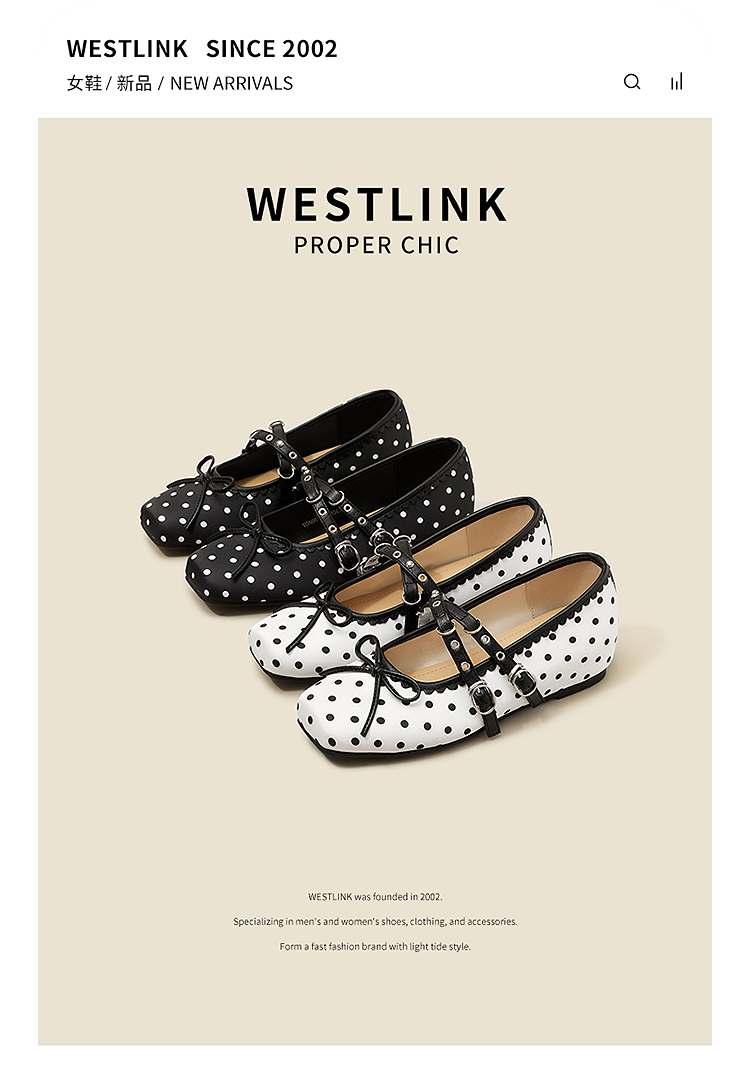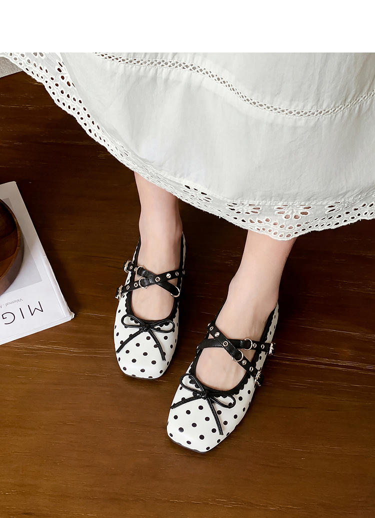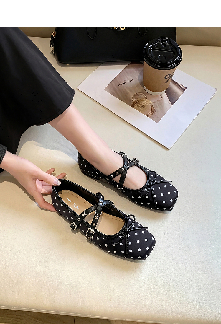 西遇芭蕾玛丽珍鞋女2026新款春季白色波点平底单鞋内增高小皮鞋子V0566344