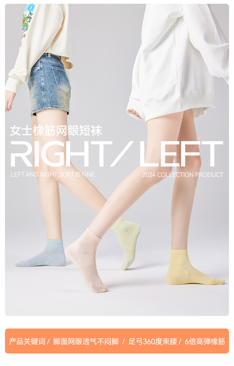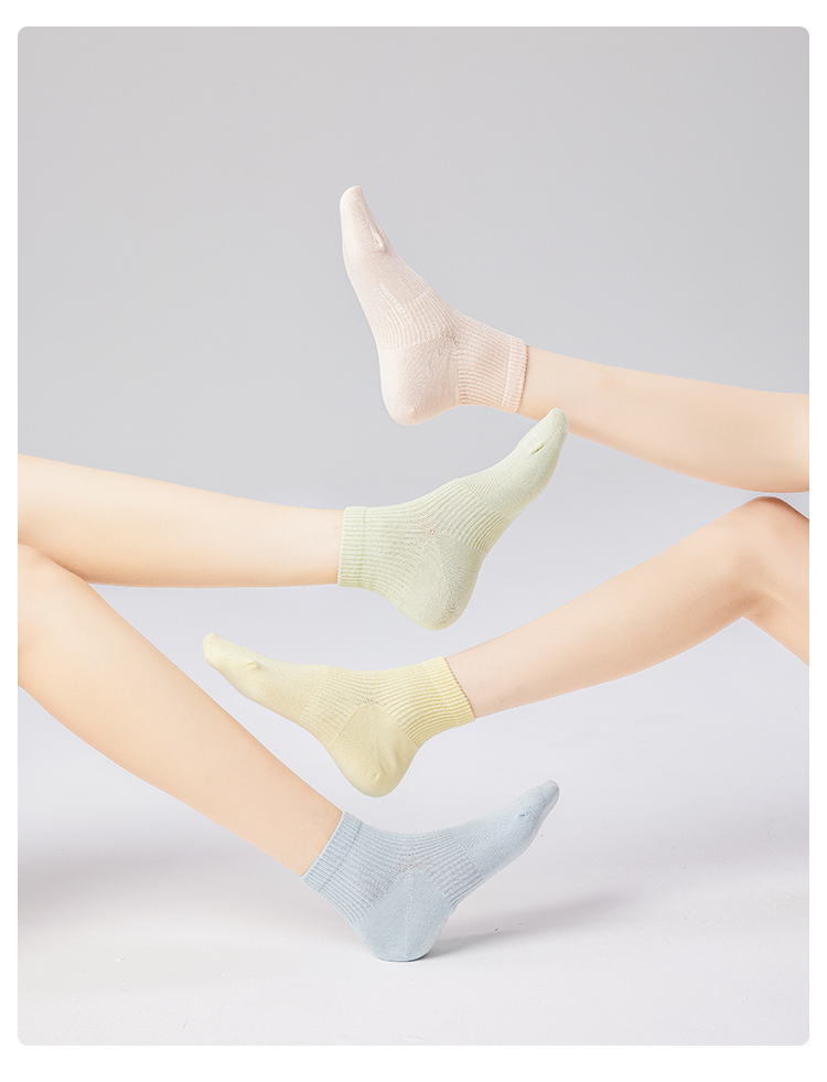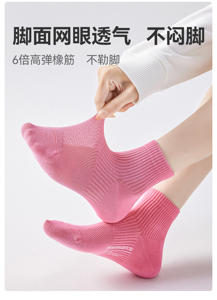 左分之右网眼纯棉袜子女春夏款透气10A抗菌女士短筒棉袜运动薄款