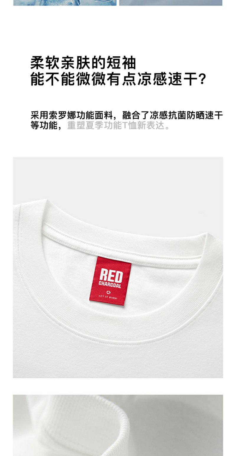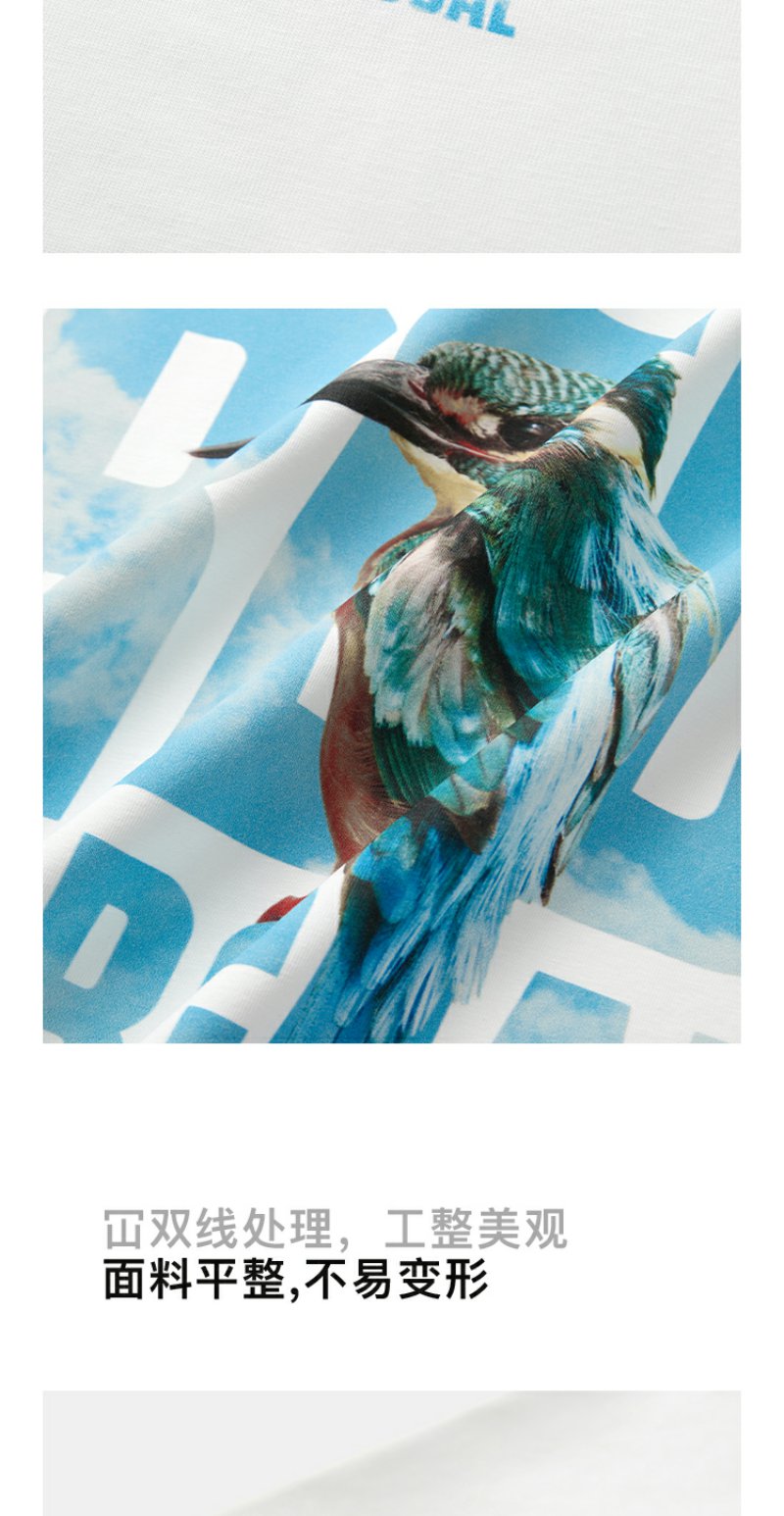 REDCHARCOAL 红炭凉感速干翠鸟印花短袖T恤男潮牌夏宽松情侣半袖