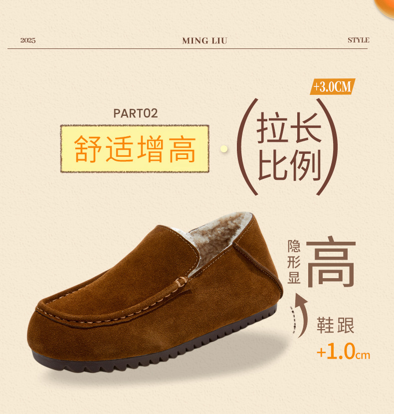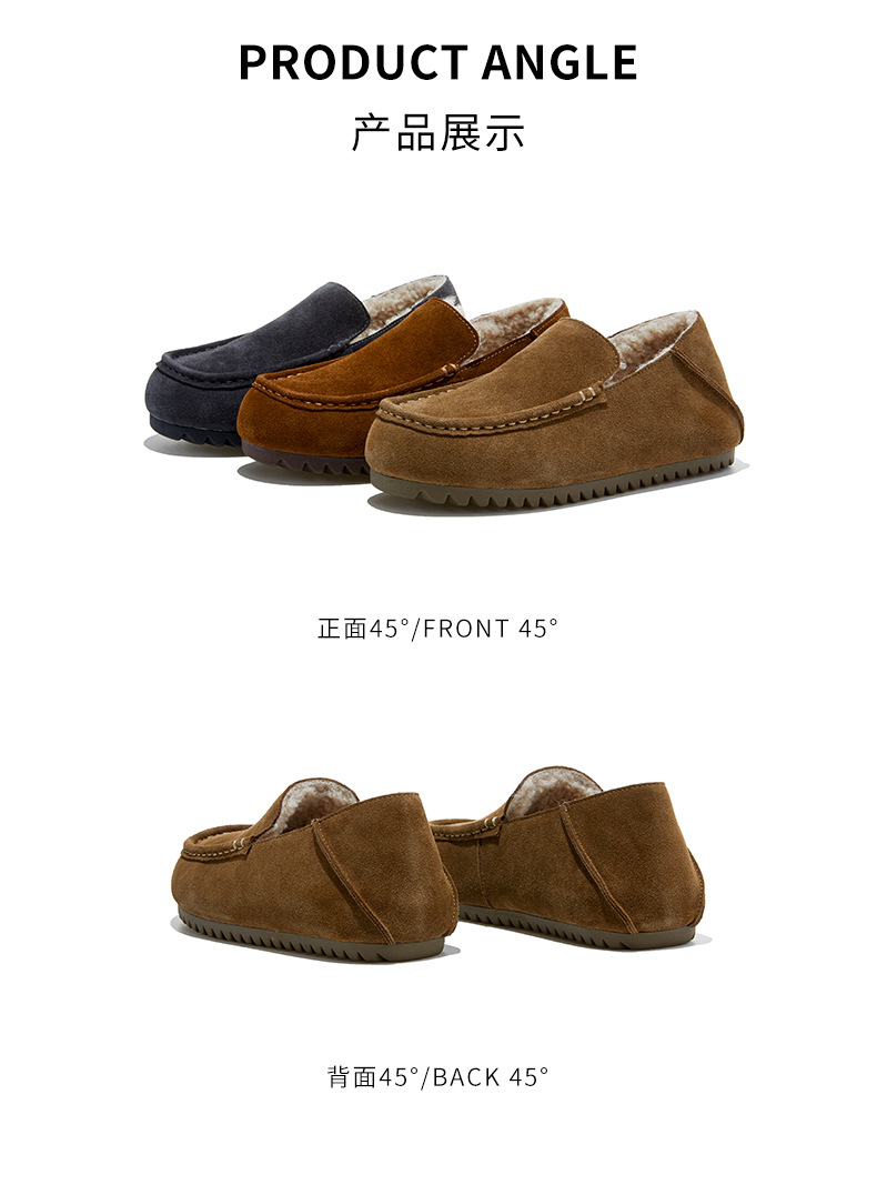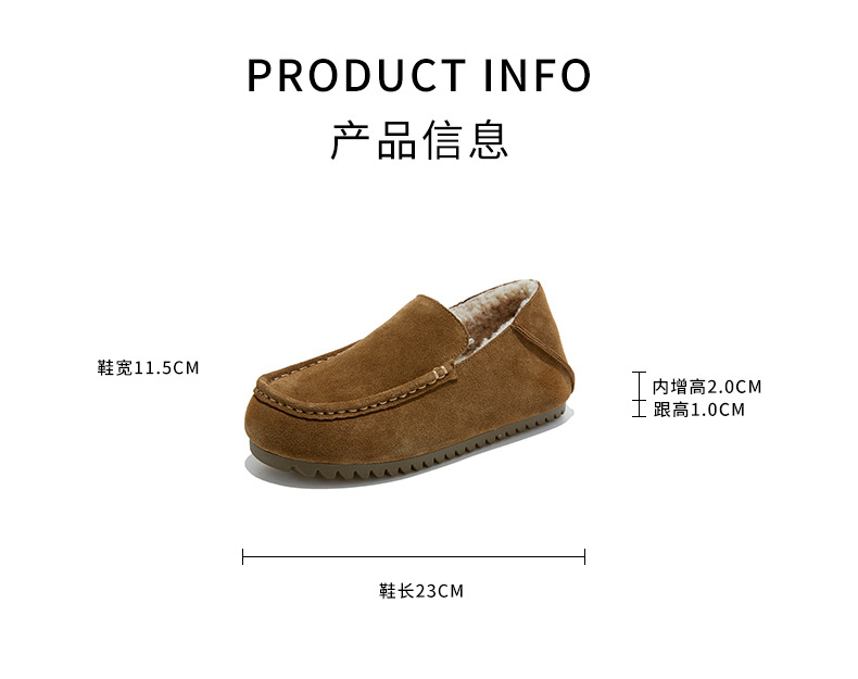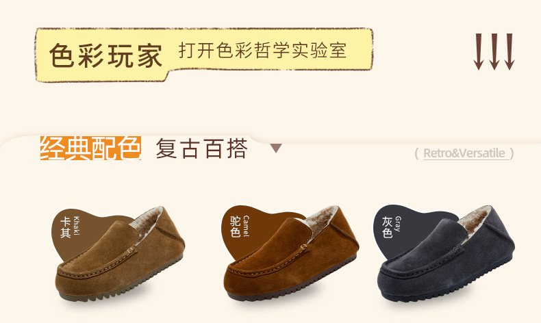 冬季新款牛皮版复古绒面加绒豆豆鞋 一脚蹬平底圆头外穿休闲鞋