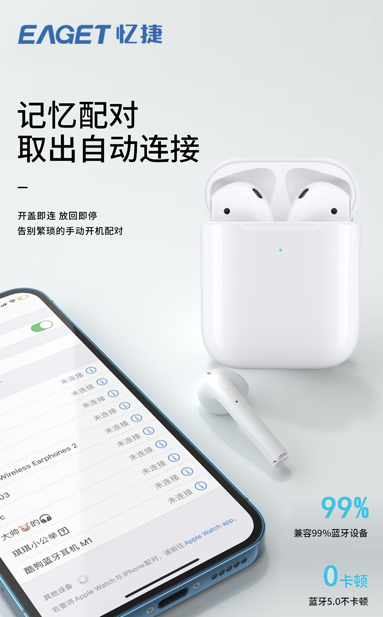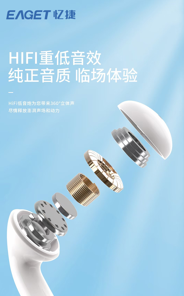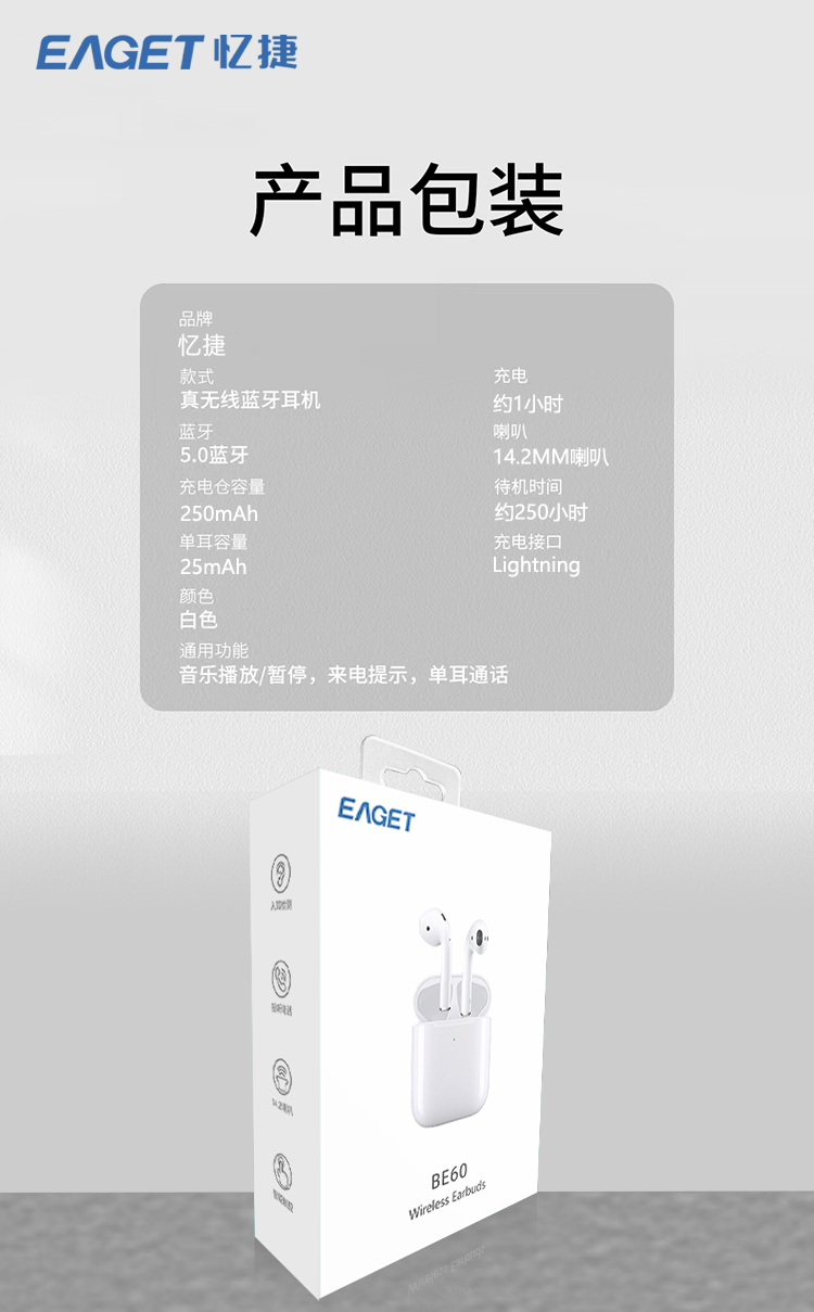 忆捷 BE60蓝牙无线耳机 超长续航 HIFI音质 便携式迷你蓝牙耳机触摸操控