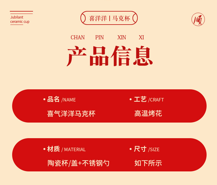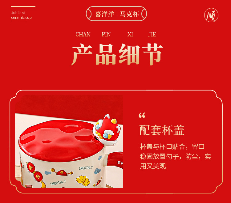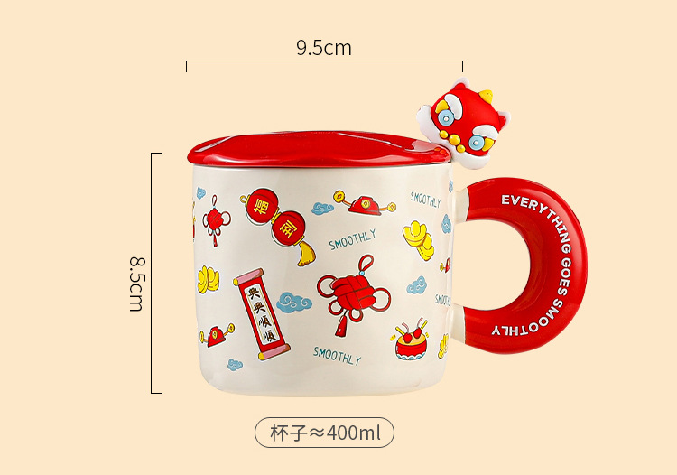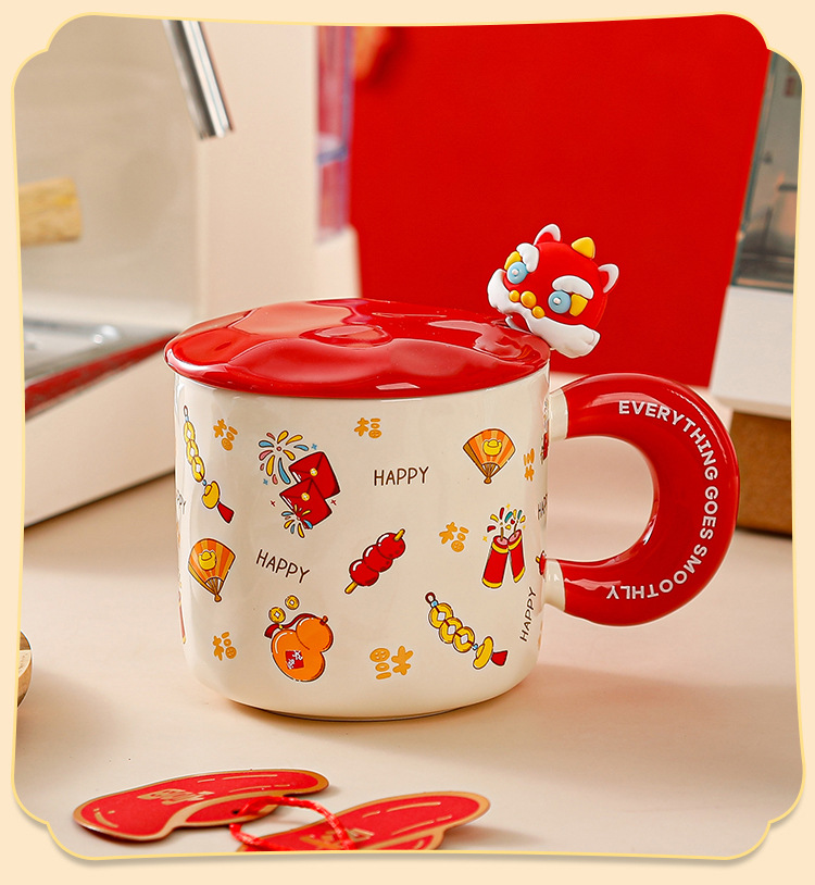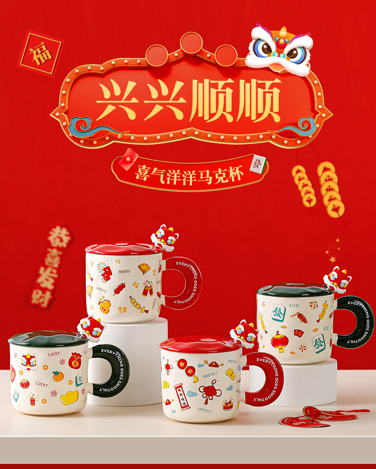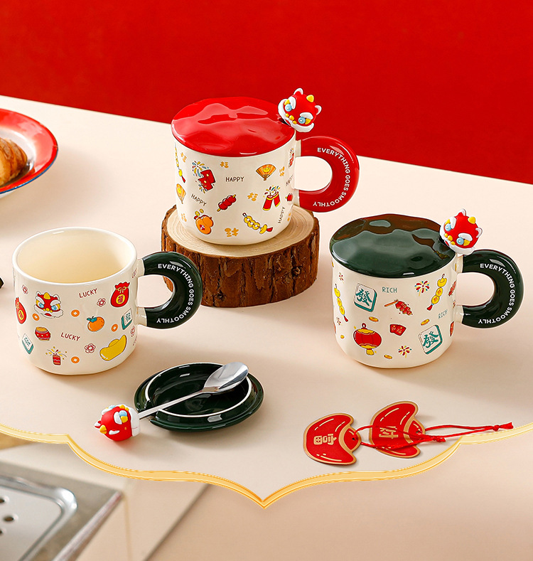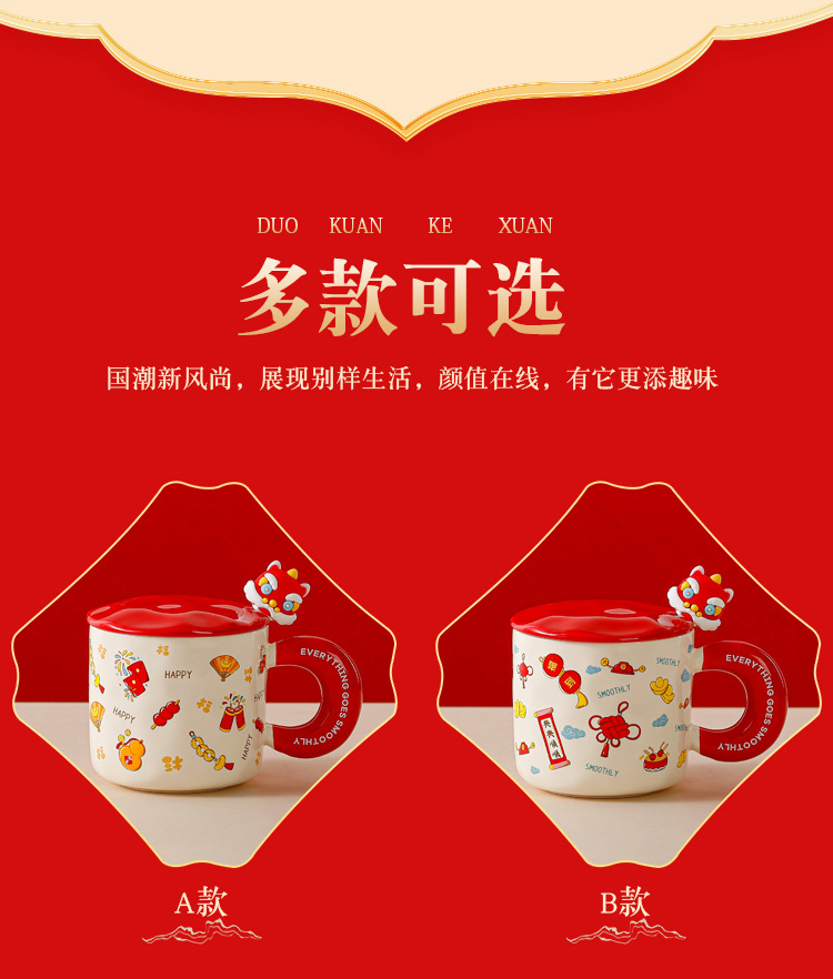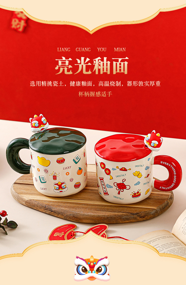 【平安喜乐❗️喜气洋洋马克杯礼盒套装】暖心相伴,春节礼品带盖勺可爱陶瓷水杯女生高颜值卡通办公室情侣杯子,新年礼盒年货礼盒