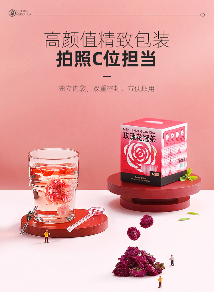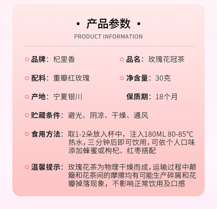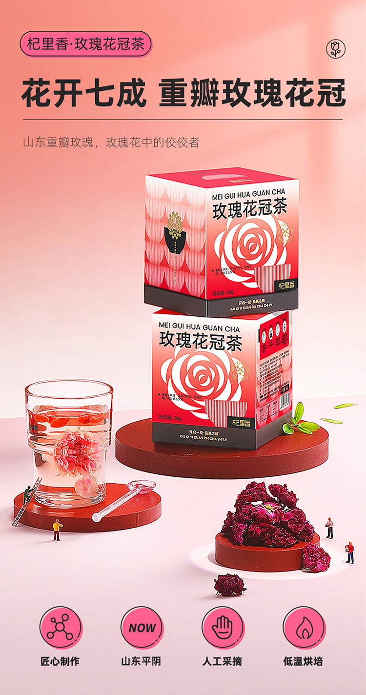 【杞里香玫瑰花冠茶30g/盒】重瓣大朵无熏蒸 花香浓郁 鲜美色艳 朵朵饱满