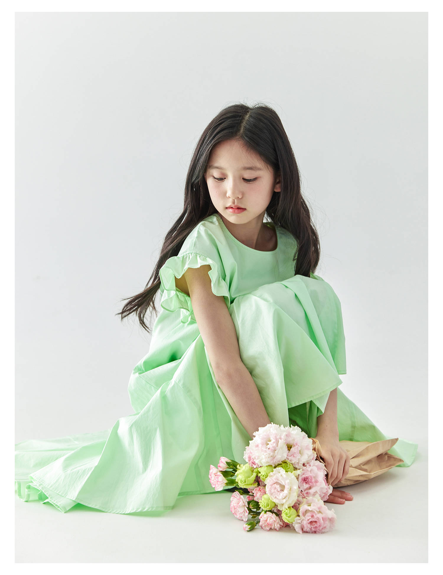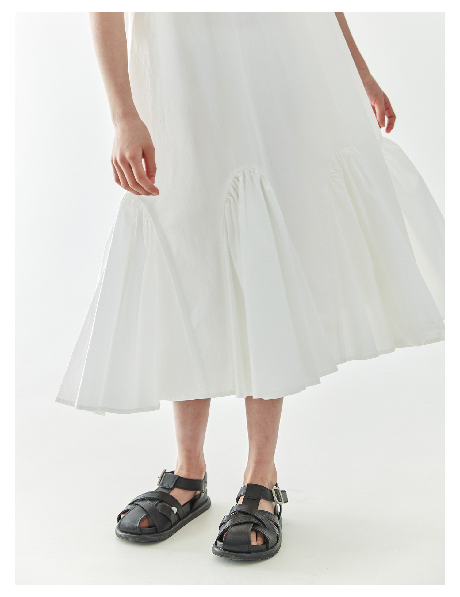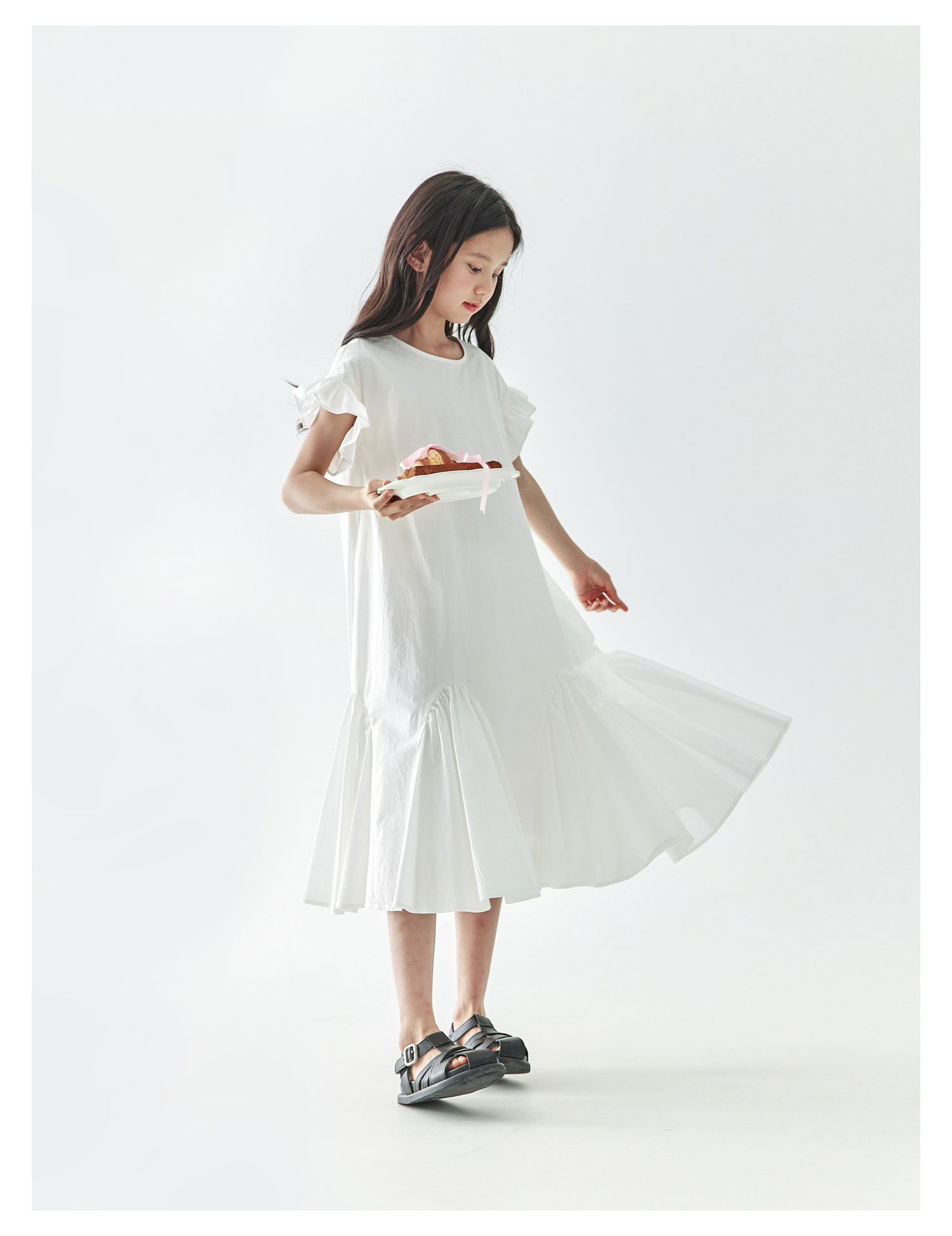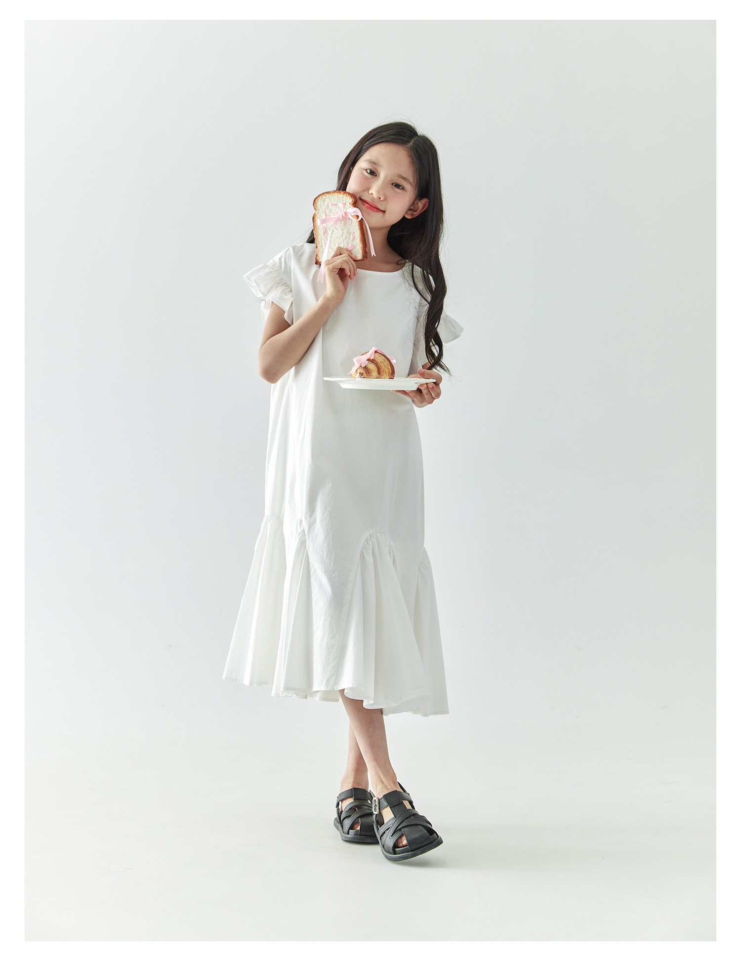 棵初2025年春夏新款女童小飞袖长款连衣裙全棉量感抽褶拼接A字裙