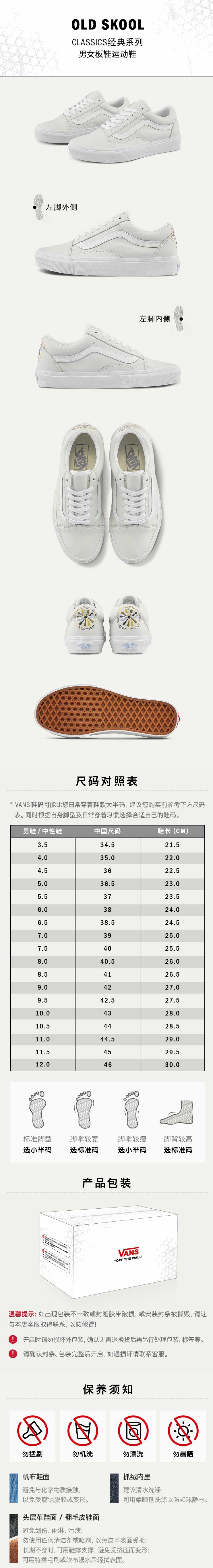 VANS Old Skool小白鞋花朵印花男鞋女鞋板鞋运动鞋VN0A5KRFB5L