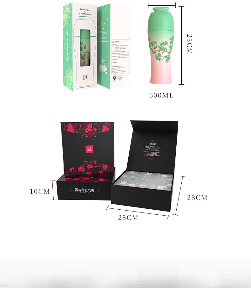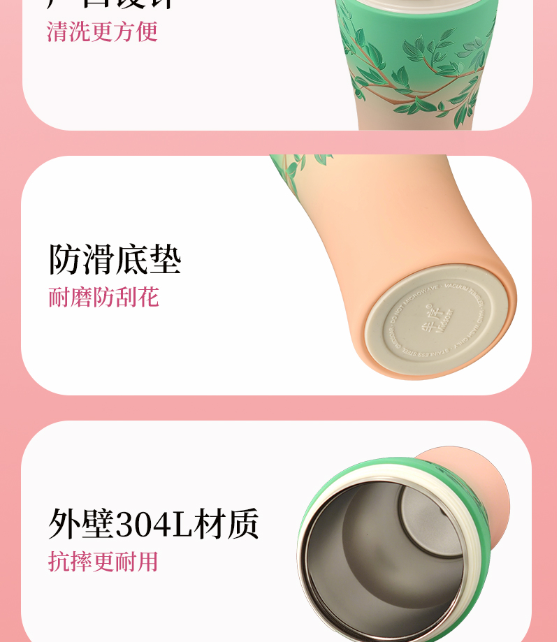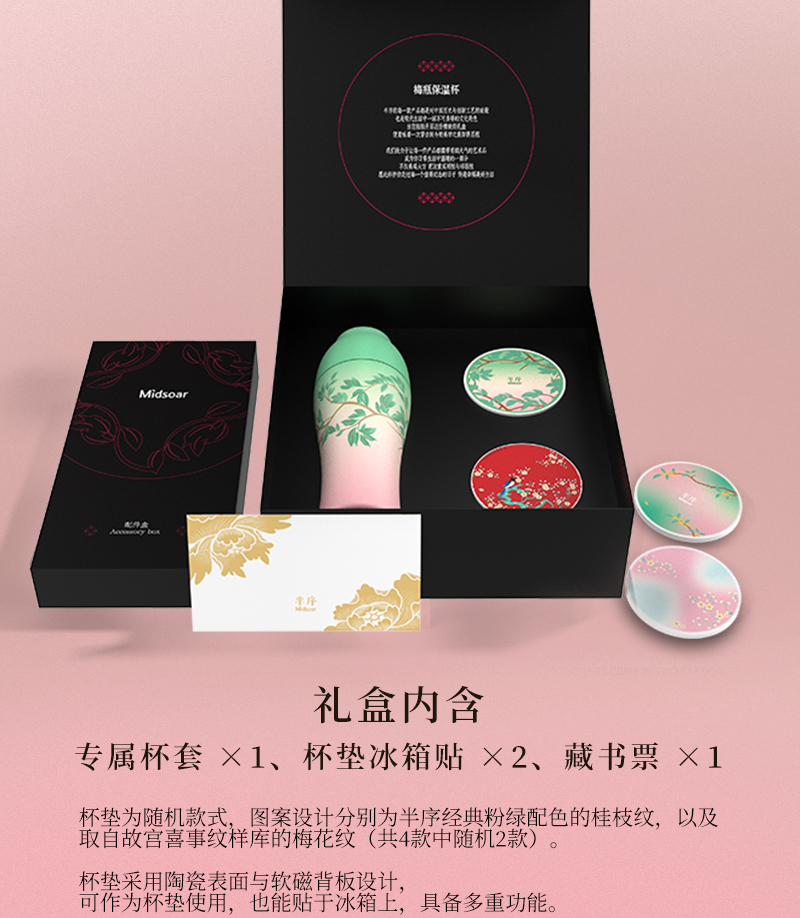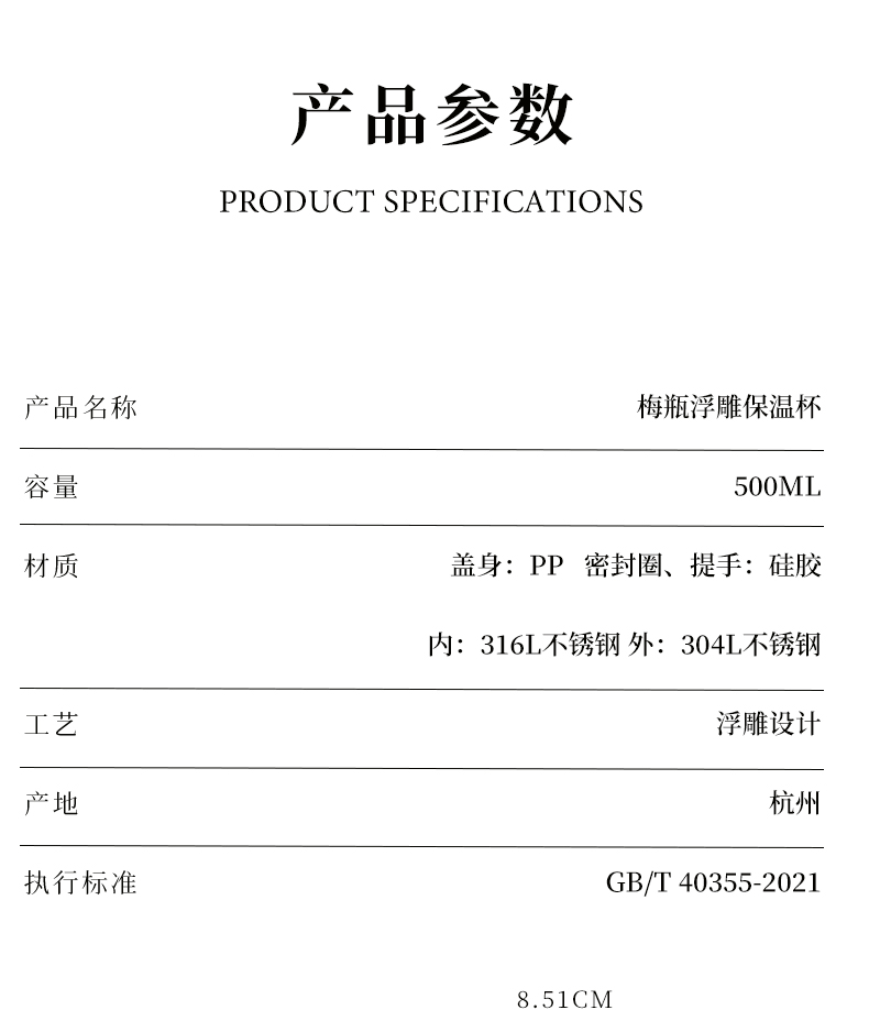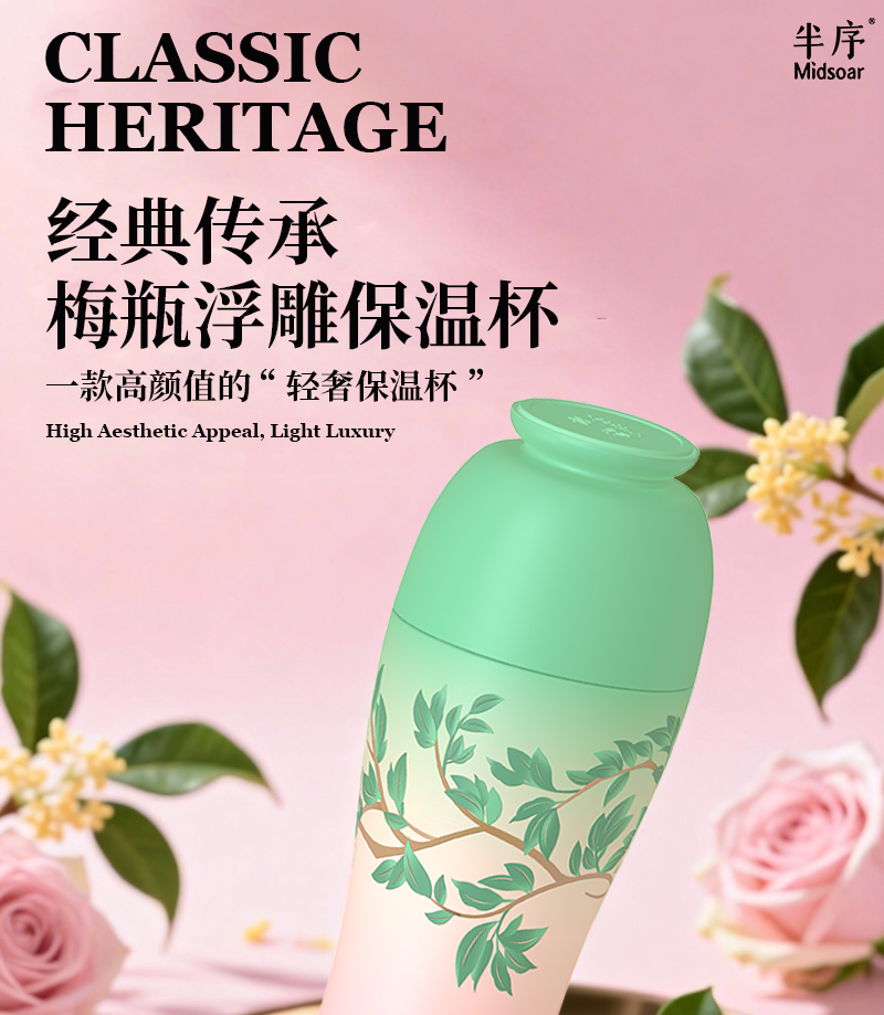 Midsoar半序梅瓶浮雕保温杯500ml316L不锈钢高颜值大容量水杯礼物推荐