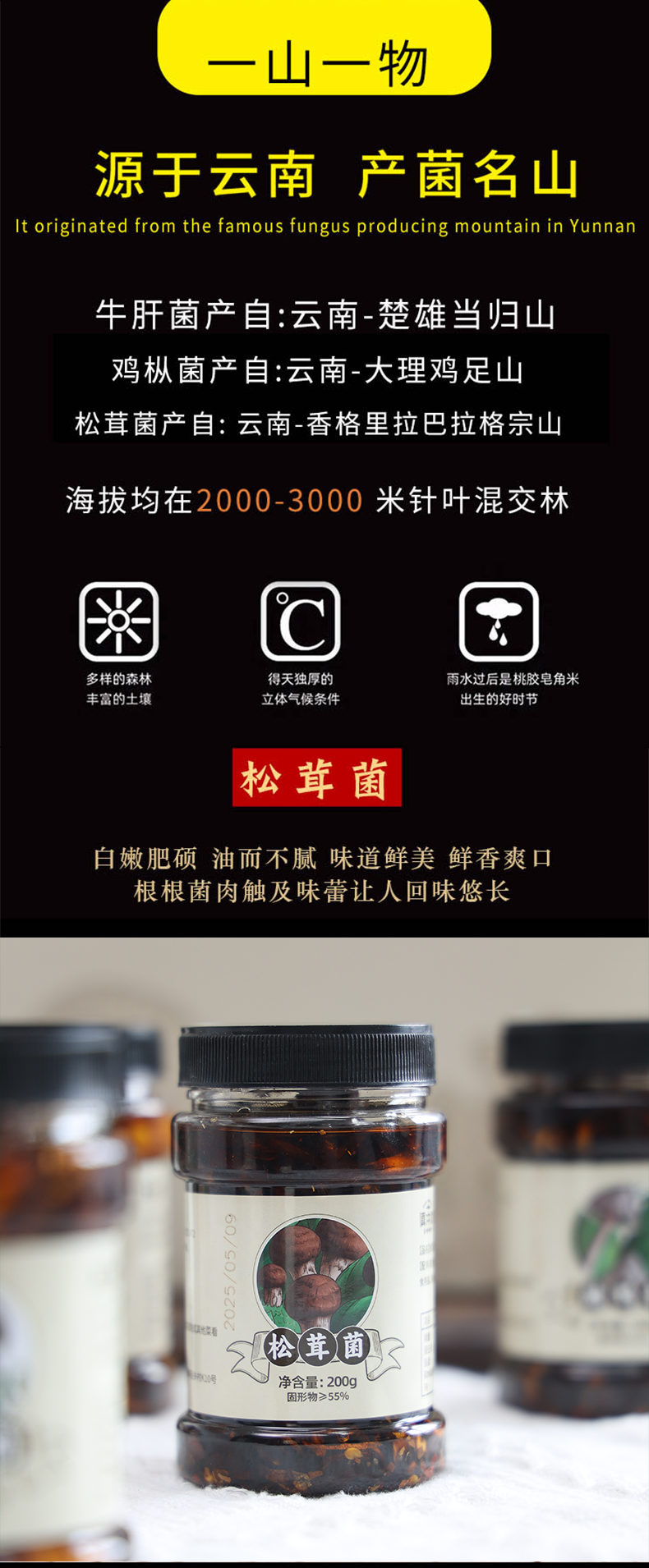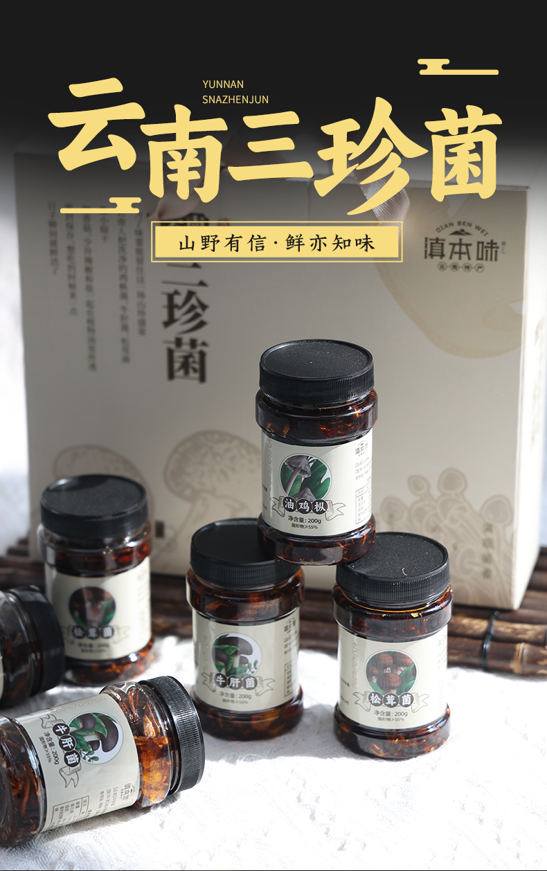 【79.9元6瓶】滋仙草严选云南即食拌饭菌子三珍菌 200g*6瓶