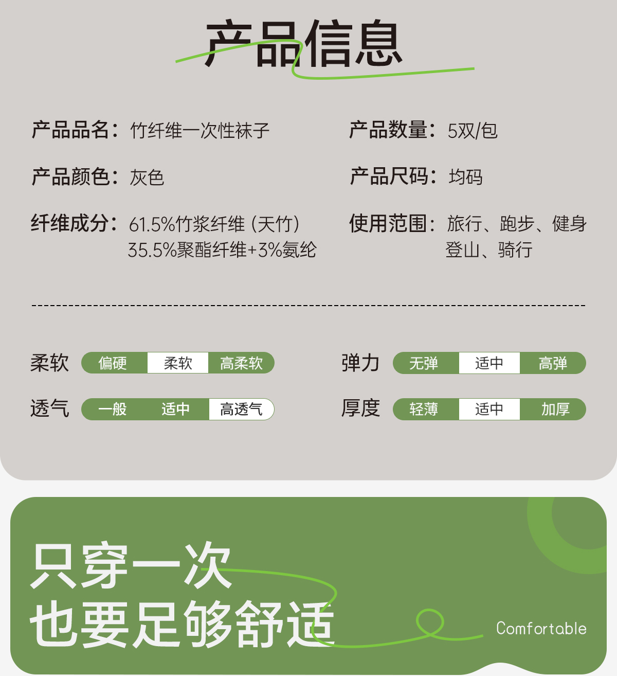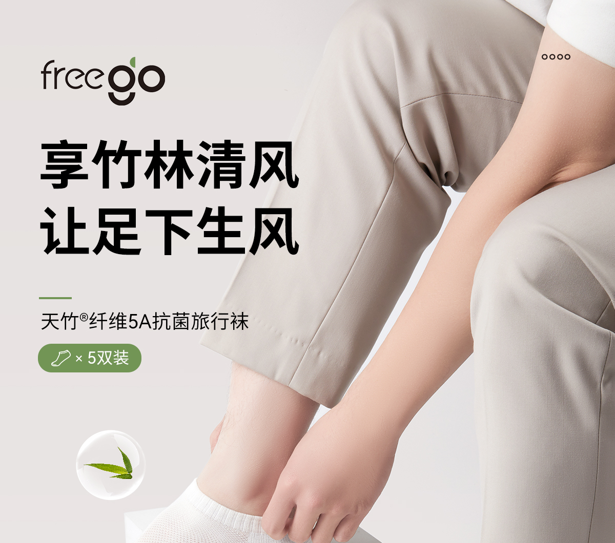 Freego一次性袜子5A天然抗菌「竹纤维」防臭透气免洗袜