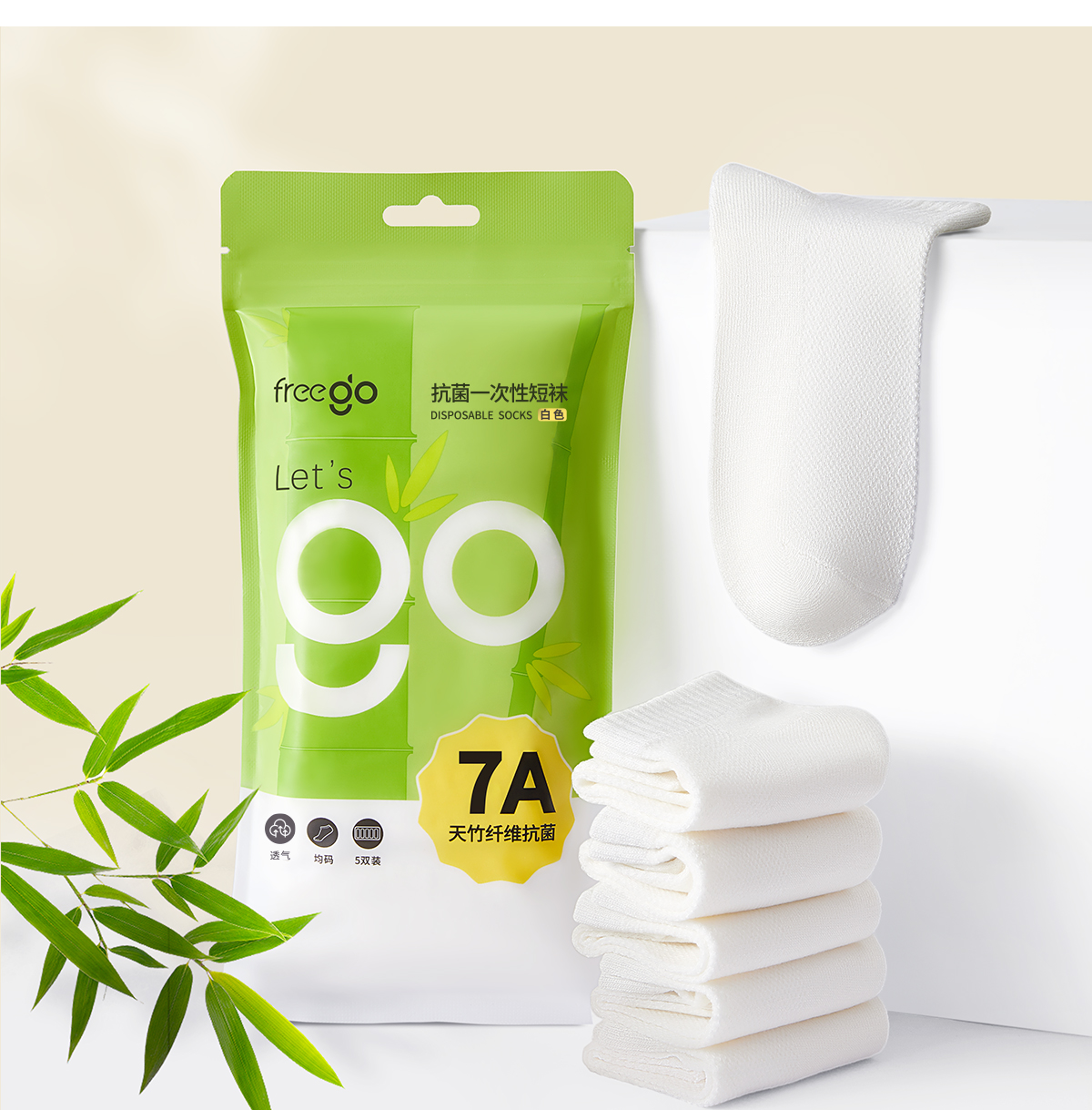 Freego一次性袜子7A天然抗菌「竹纤维」防臭透气免洗袜