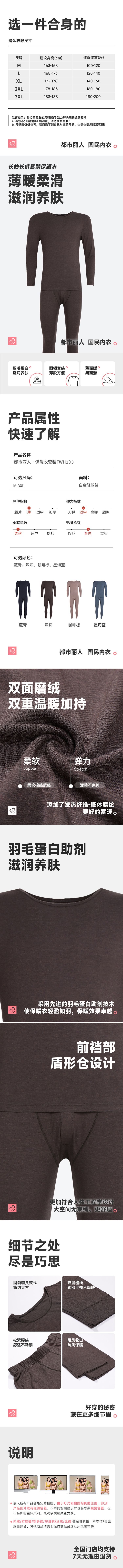都市丽人保暖内衣白金轻羽绒男士保暖衣长袖长裤保暖衣套装FWH1D3