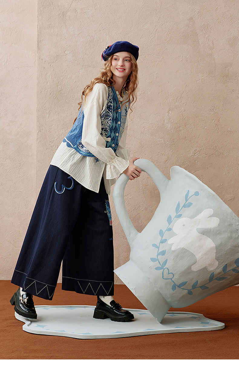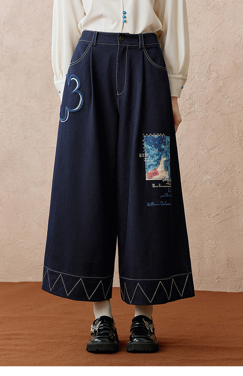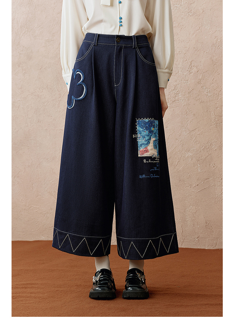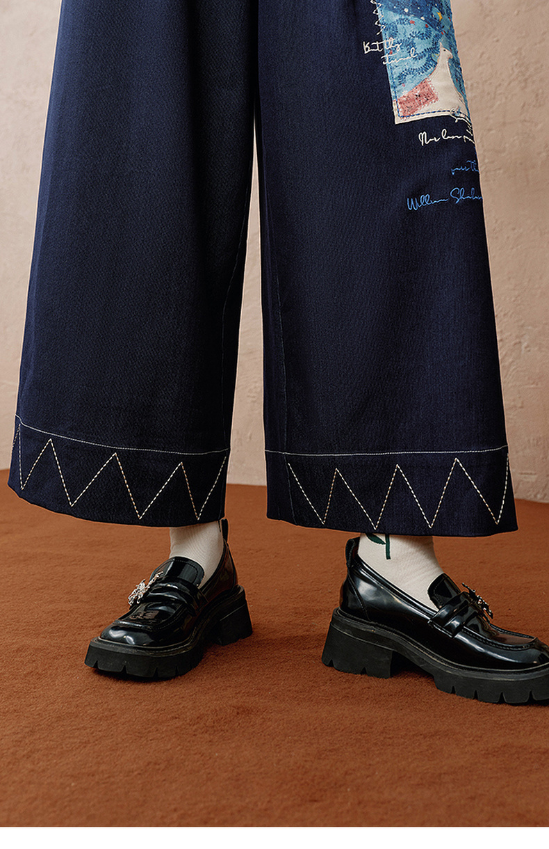 两三事 芳菲绽迹 2025秋季新款复古印花毛巾绣阔腿休闲裤女宽松