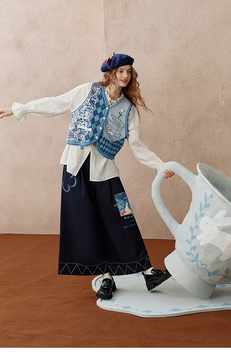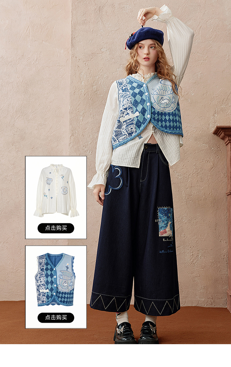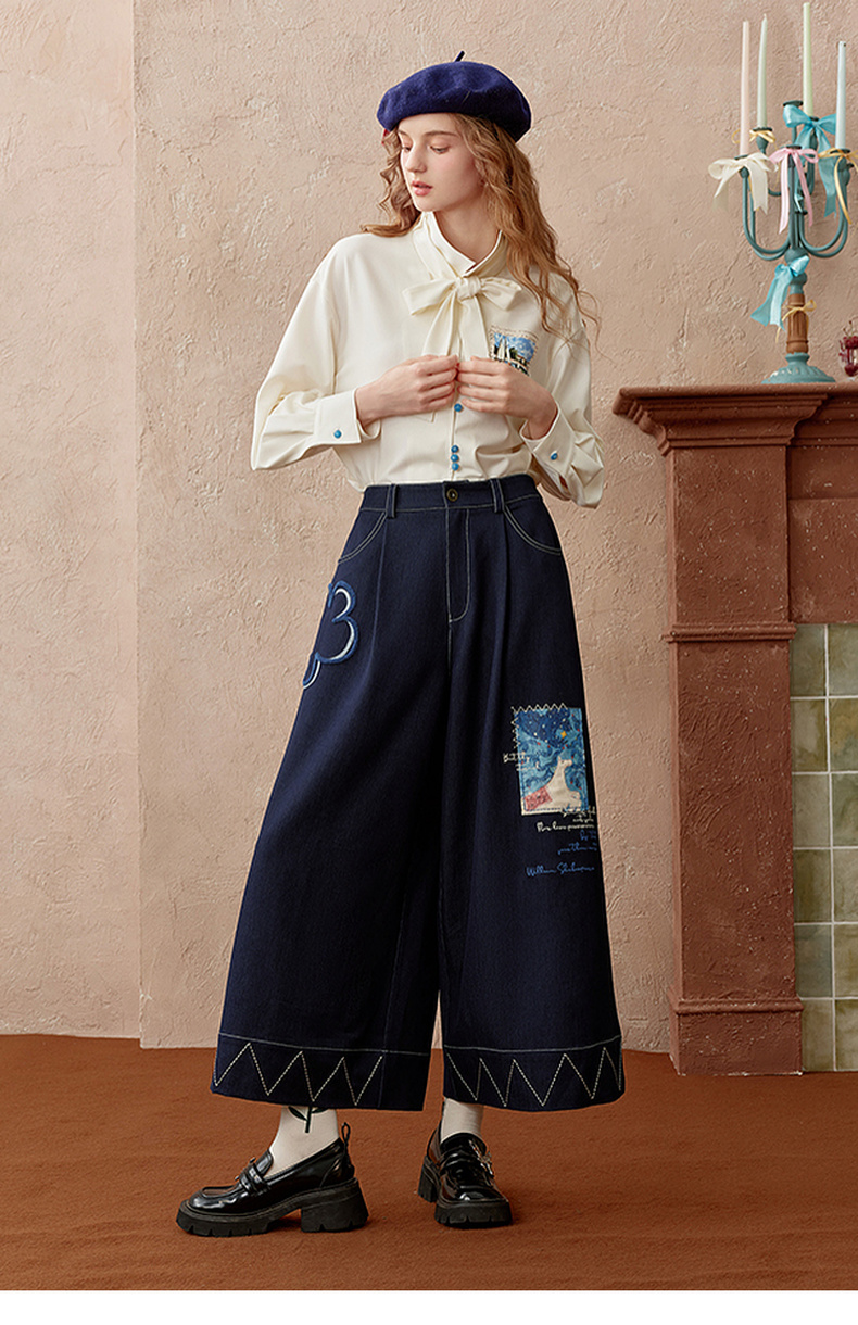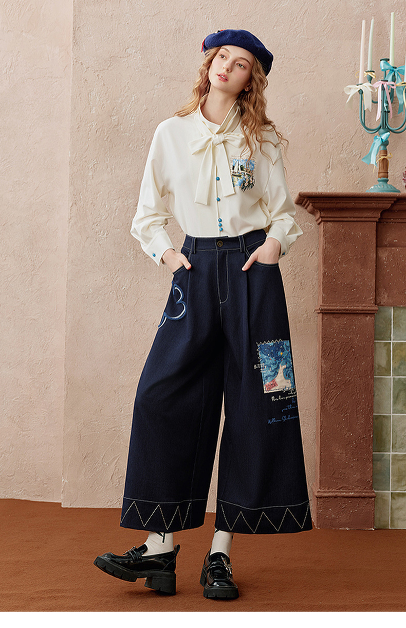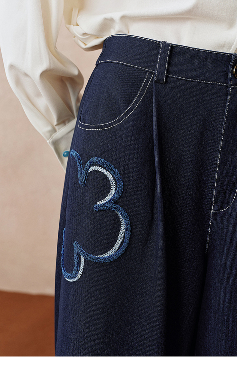 两三事 芳菲绽迹 2025秋季新款复古印花毛巾绣阔腿休闲裤女宽松