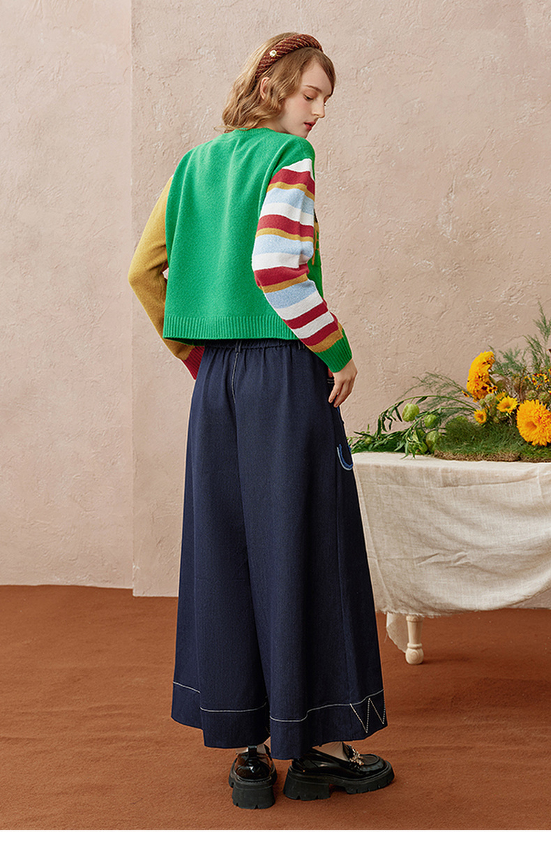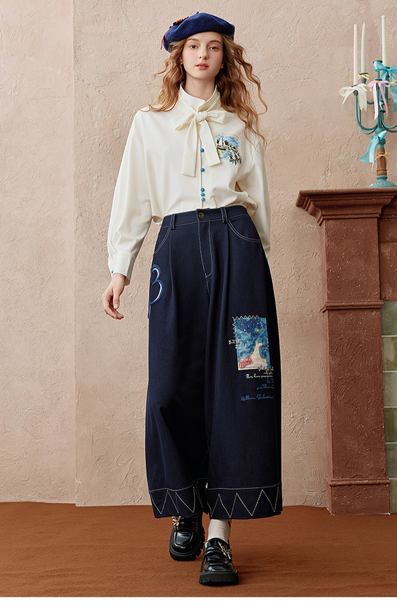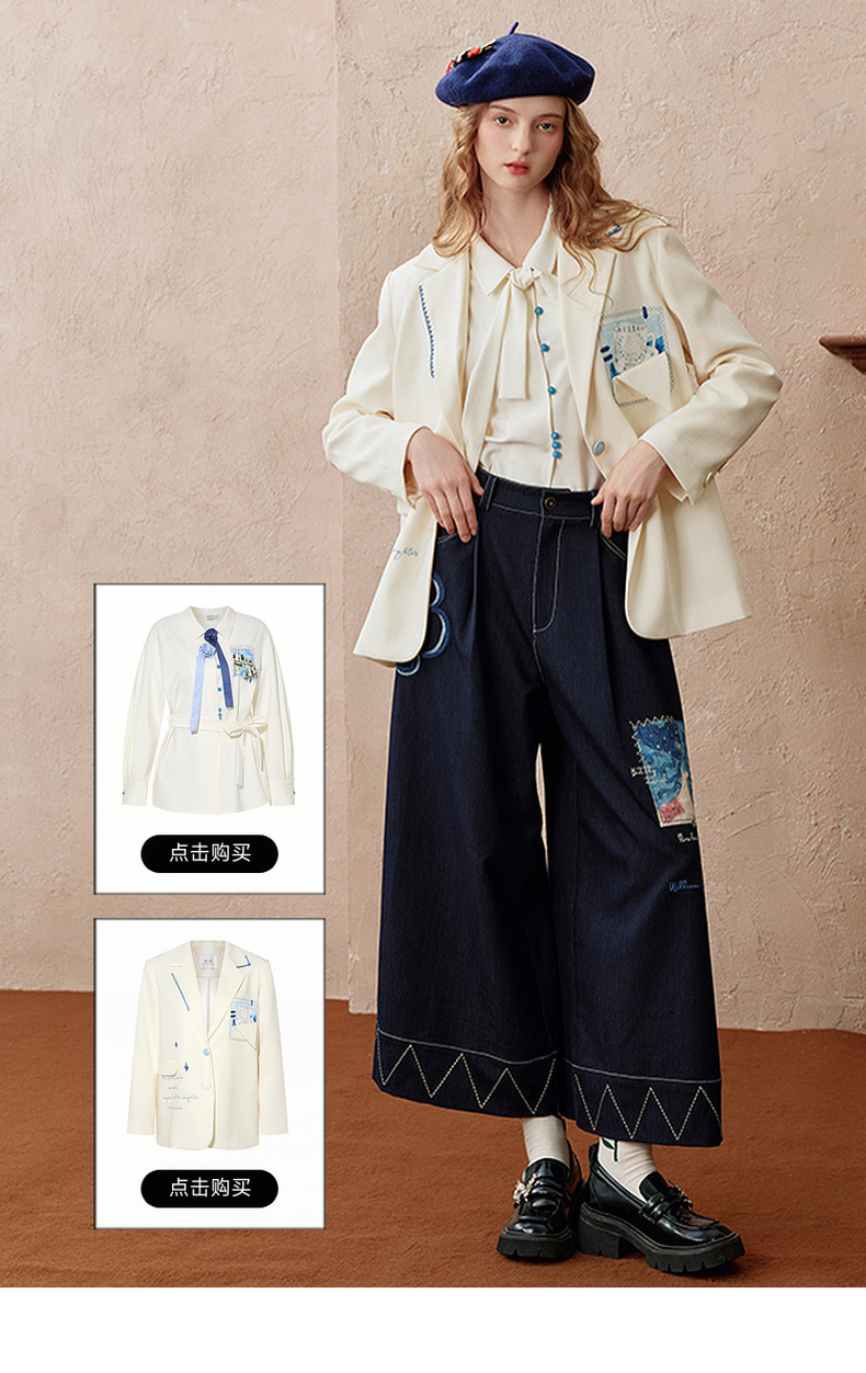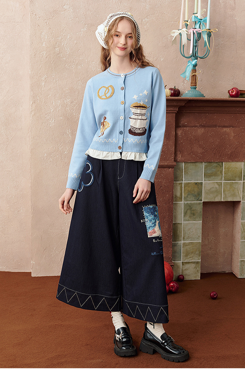 两三事 芳菲绽迹 2025秋季新款复古印花毛巾绣阔腿休闲裤女宽松