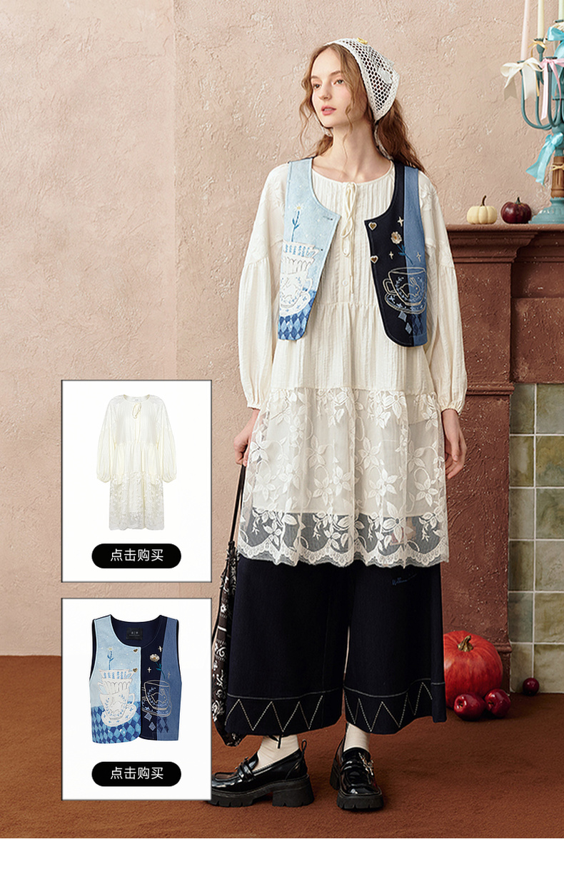 两三事停在云边2024夏季新款小清新花边翻领荷叶边连衣裙长裙