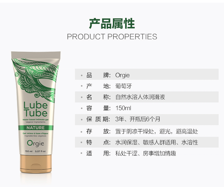 葡萄牙原装Orgie 基础水润水溶性润滑液 150ml