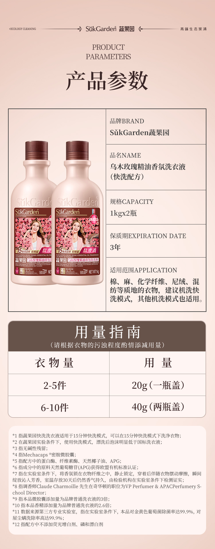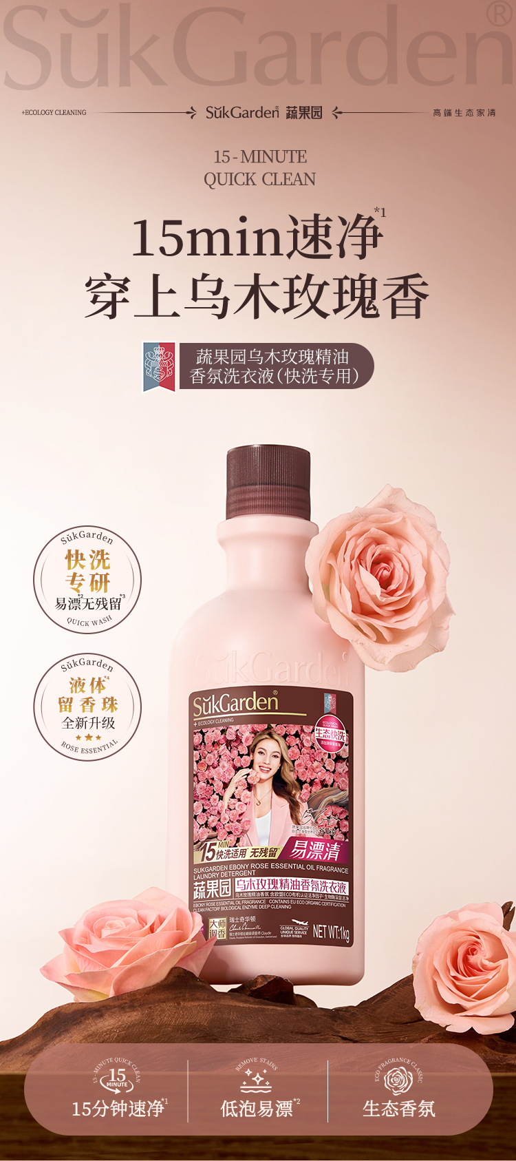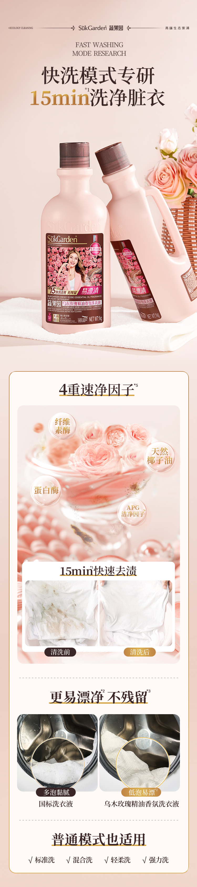 49.9元4斤蔬果园乌木玫瑰精油(快洗专用)香氛洗衣液 限时赠500g洗衣乳液一袋