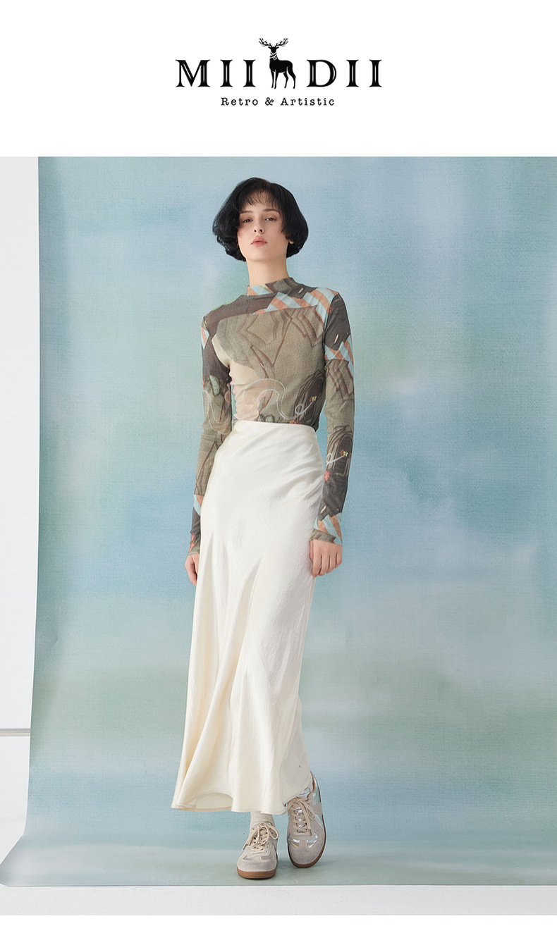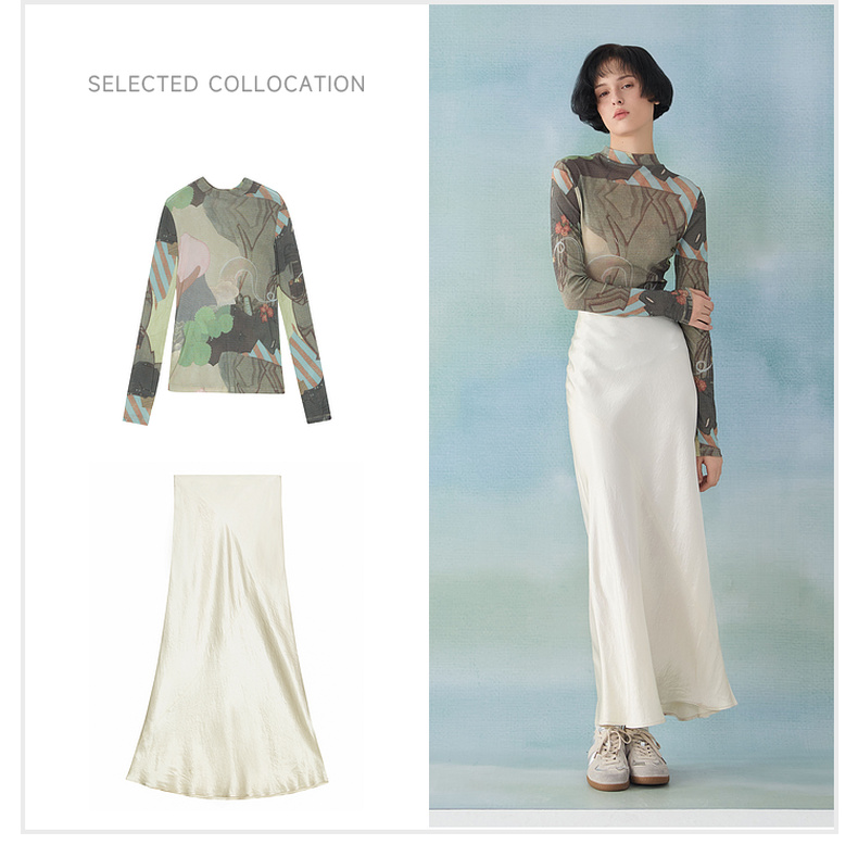 谜底气质长半裙2025春季新品醋纤光泽感半身裙亲肤修身251GB0142