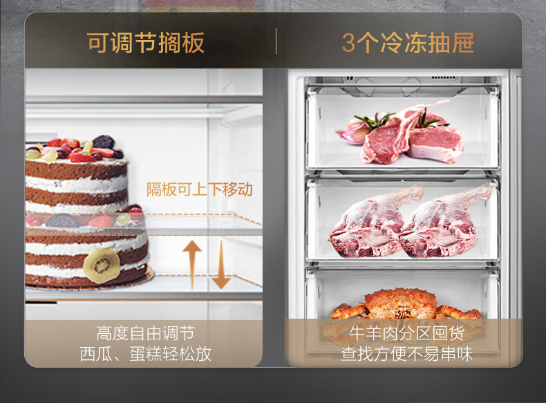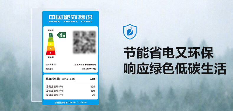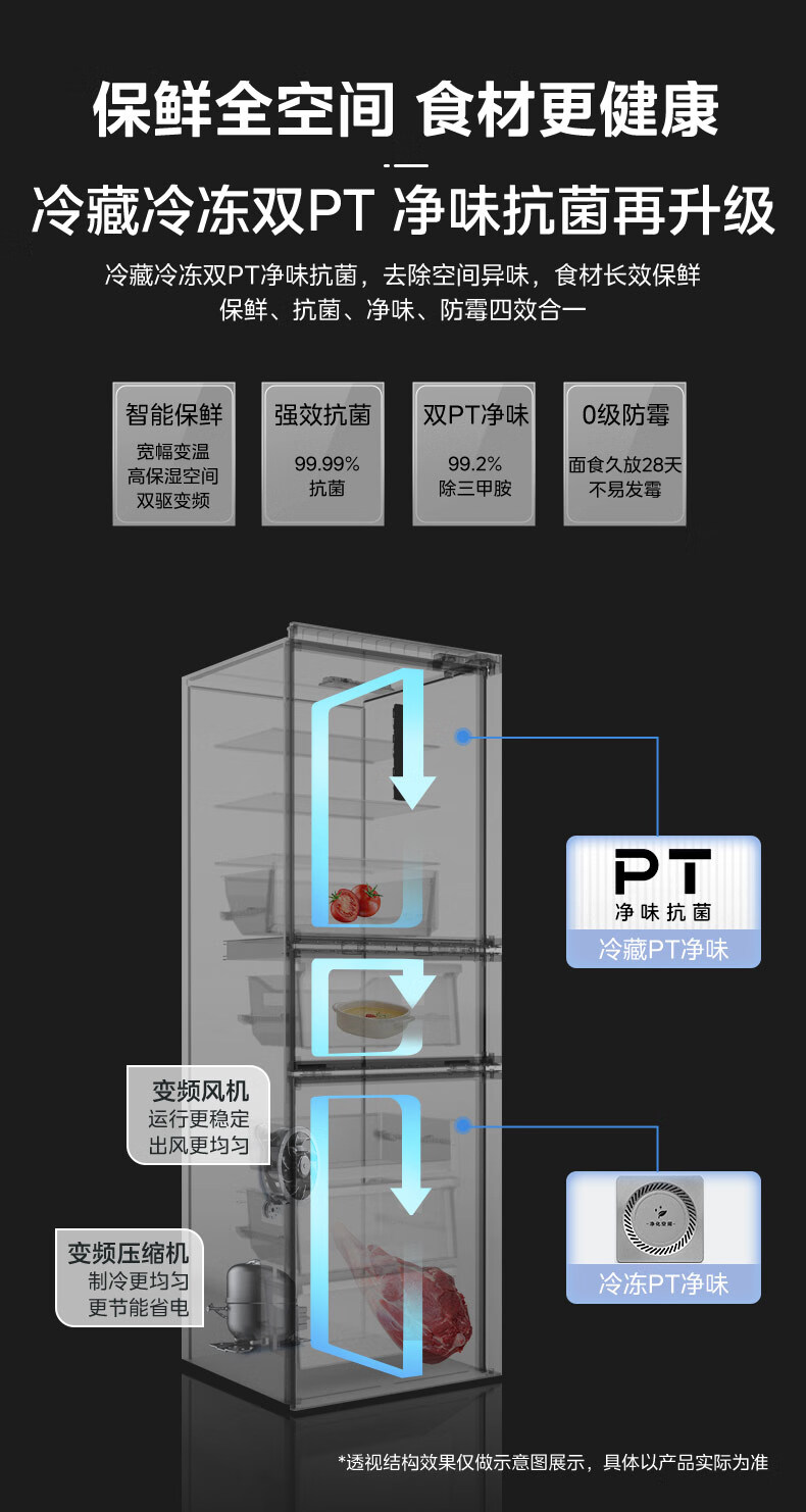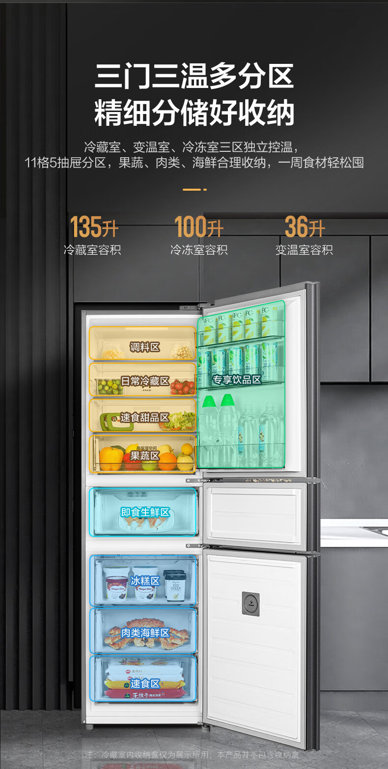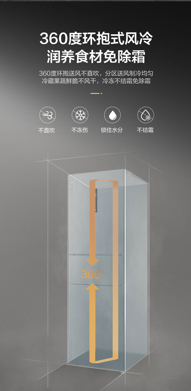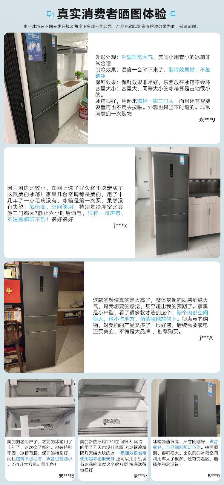 【国补15%】美的冰箱MR-283WTPZE炭灰-月夜家用三门小型电冰箱一级能效节能风冷无霜双净味租房