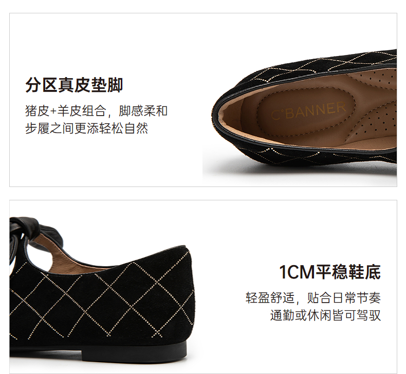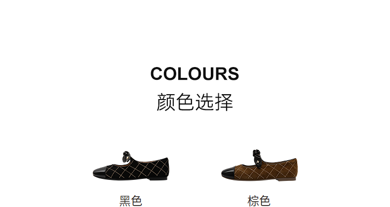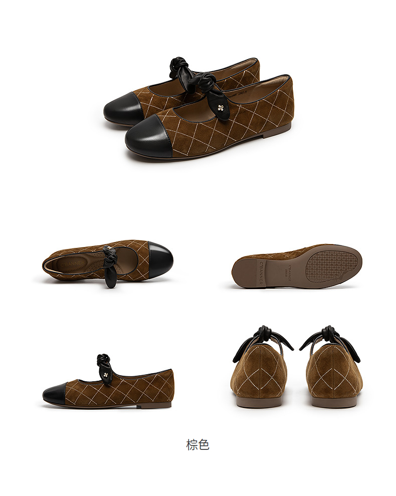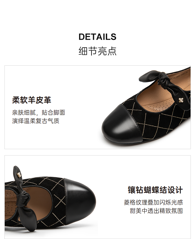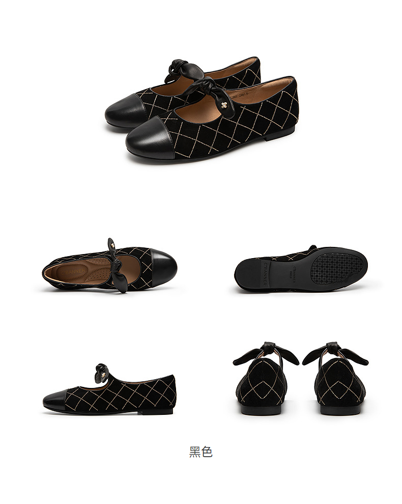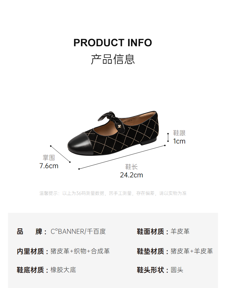 千百度拼接羊皮玛丽珍鞋女蝴蝶结平底小香风晚晚单鞋A25482462
