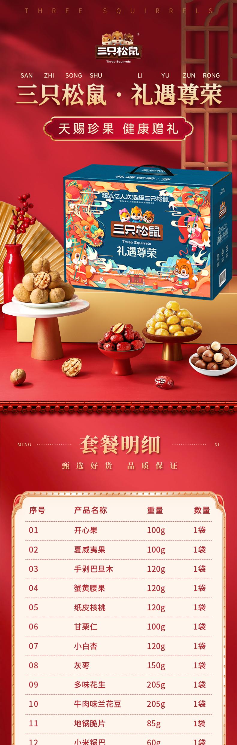 【三只松鼠】 礼遇尊荣 坚果礼盒约2.1kg16袋装