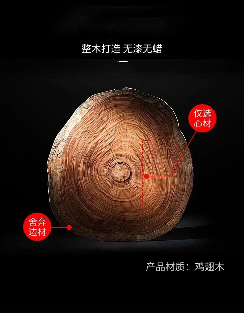 ① 天然鸡翅木,无漆、无蜡、无拼接、无染色、不发霉变色