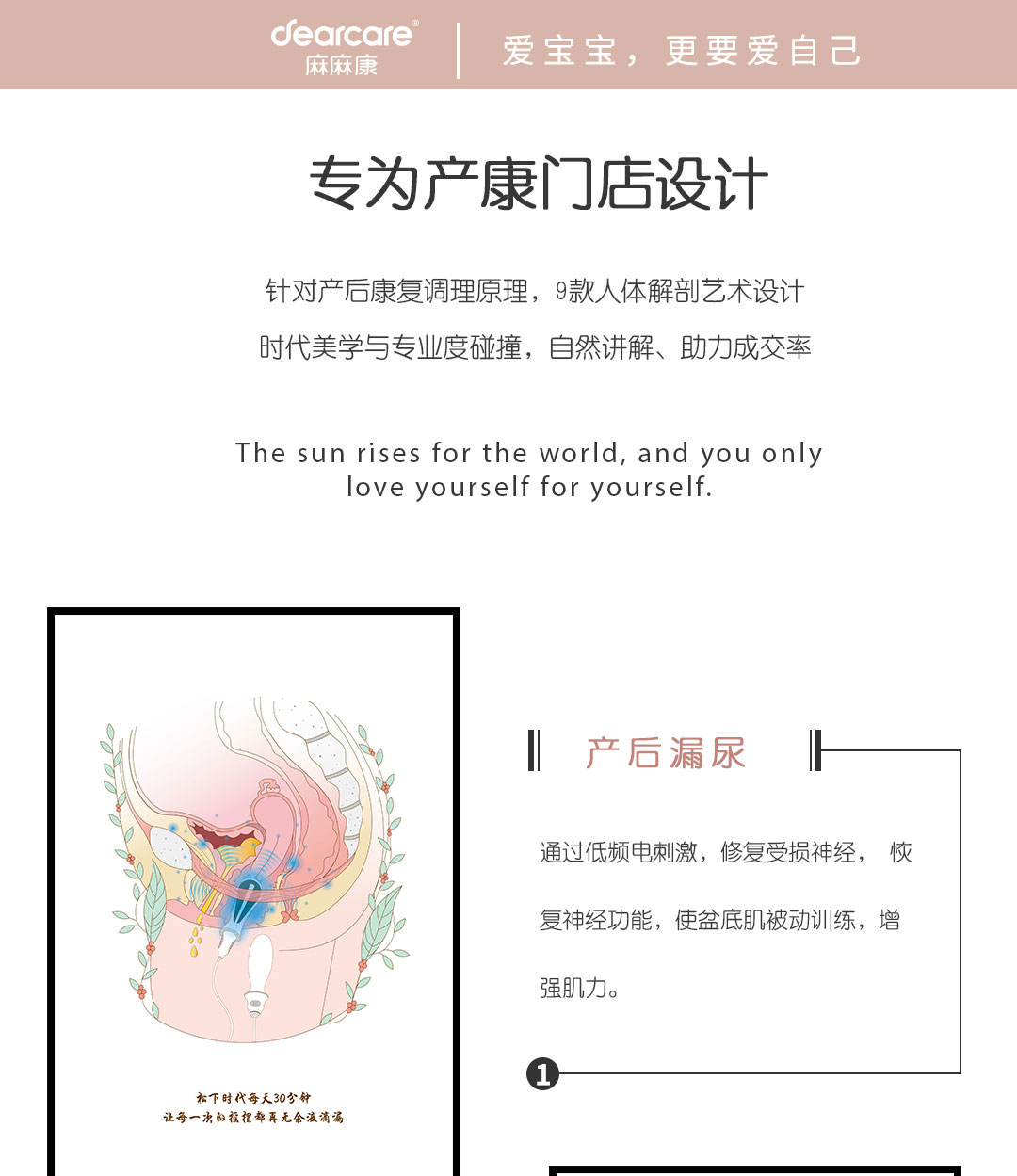 麻麻康深深懂得每一位妈妈的不易,致力于为妈妈解决产后康复难题,将专业医疗带入普通家庭,让妈妈在家也可以享受专业的产后康复,满足妈妈全方位的产后康复需求,贴心呵护妈妈健康。 在家做产康,就用麻麻康!